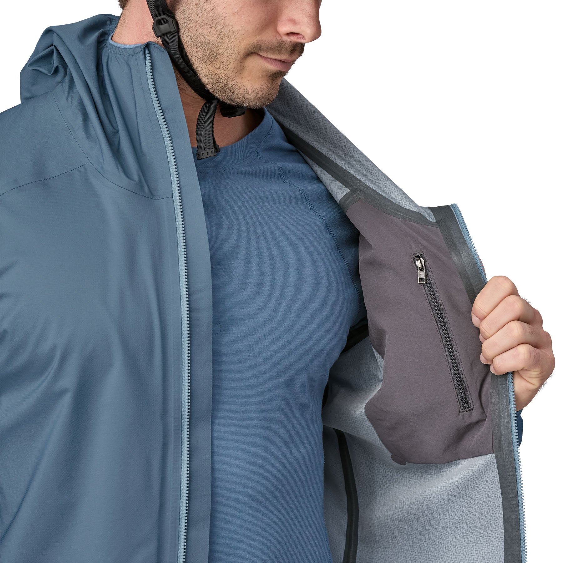 Breathable 100% recycled nylon fabric with stretch shrugs off wind and light precipitation, allowing unrestricted movement and eliminating the need for pit zips