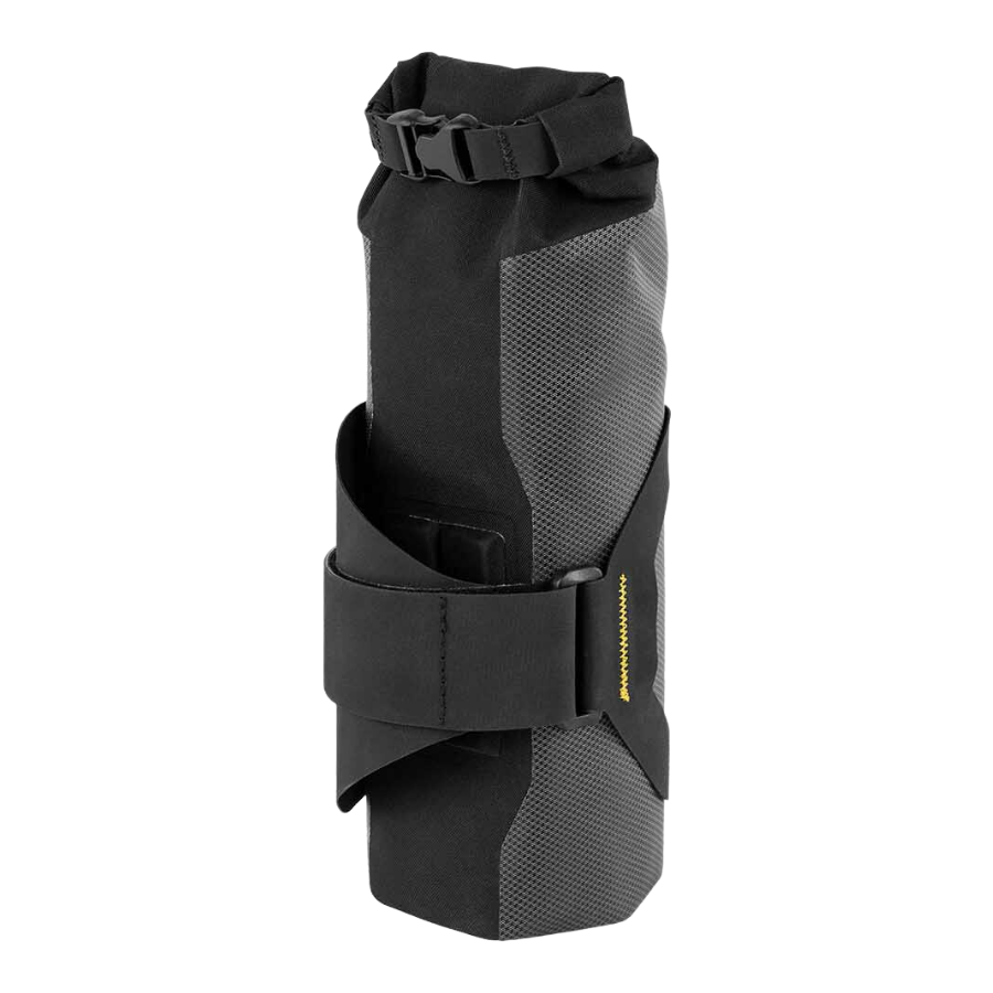 The Expedition Downtube Pack is cut from a three-layer laminate fabric that was developed specifically for Apidura. The material is lightweight, and is highly resistant to tears and abrasion. Notably, it’s welded together at the seams, creating a watertight seal that ensures the down tube bag remains completely waterproof.