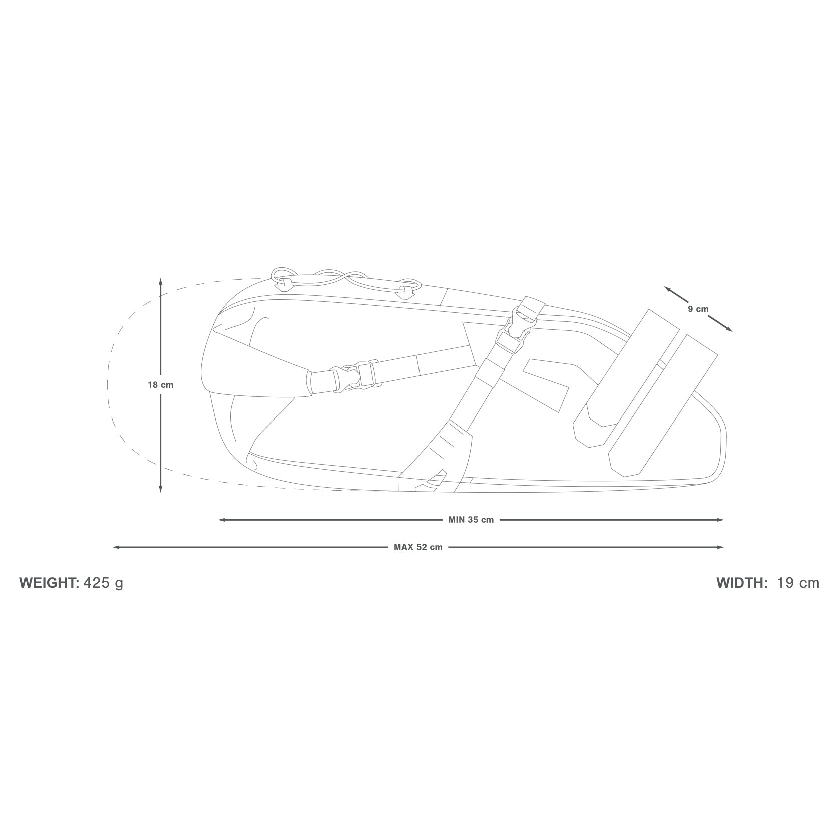 Built from a lightweight laminate developed specifically for Apidura, the saddle bag is highly resistant to abrasions and tears. The seams have been welded together, creating a waterproof seal that ensures contents always stay dry, even in sustained rain.