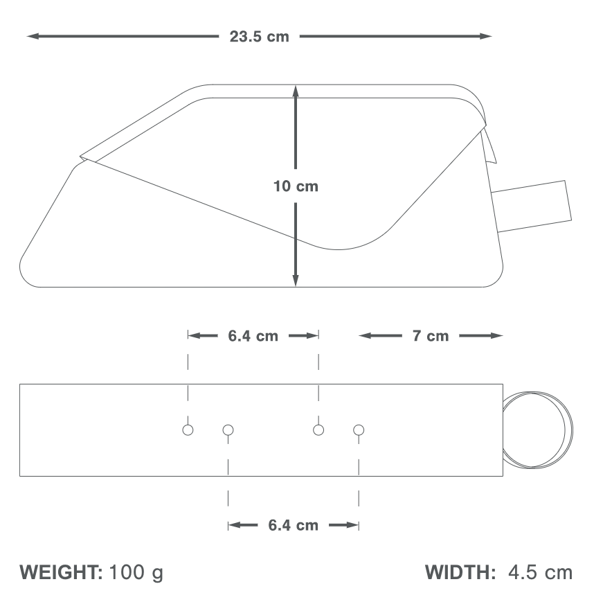 The bolt on top-tube bag is made from Hexalon, a bespoke laminated fabric developed specifically for Apidura. Designed to fit the demands of ultra-distance cycling competition and audax, the material is waterproof and lightweight, with strong tear and abrasion resistance.