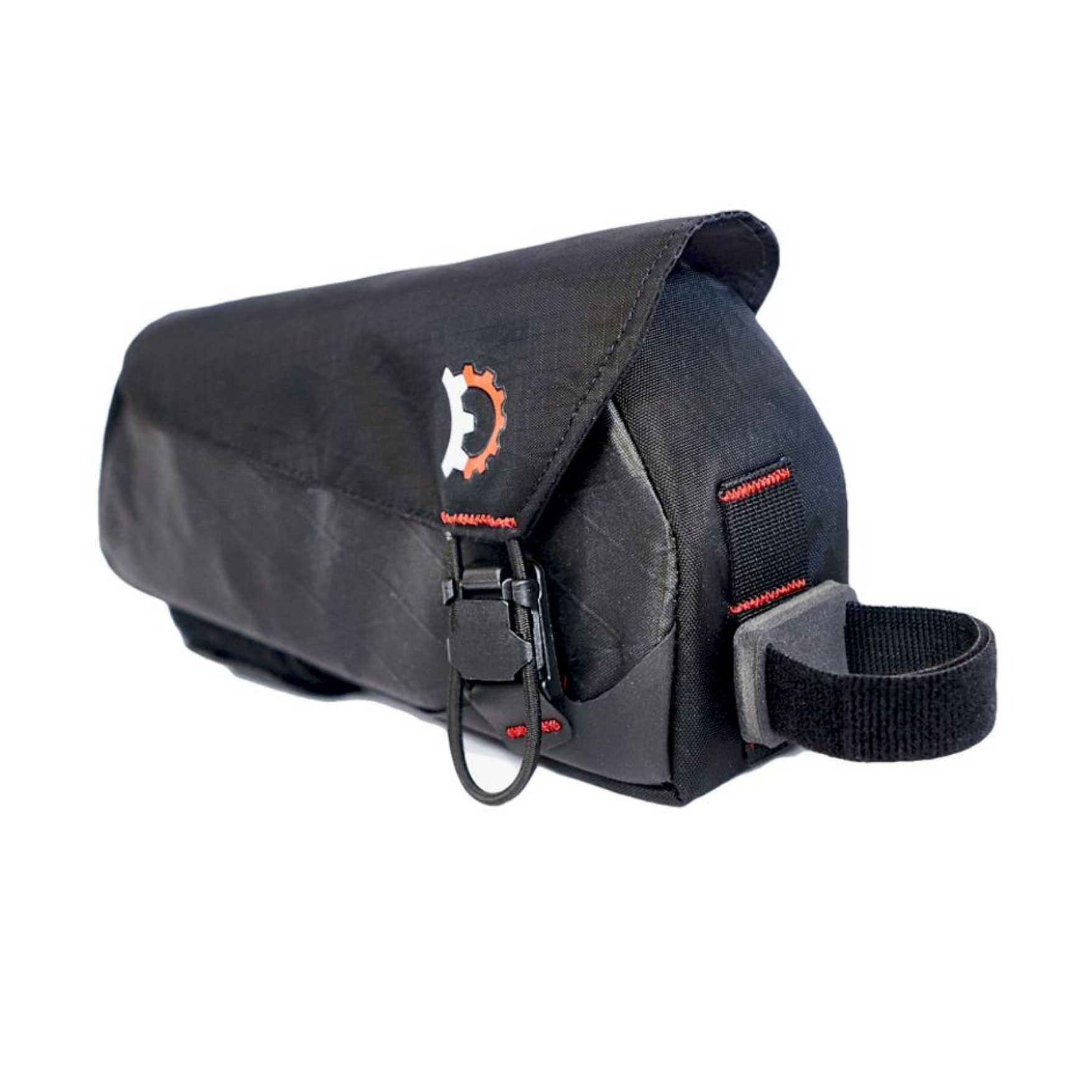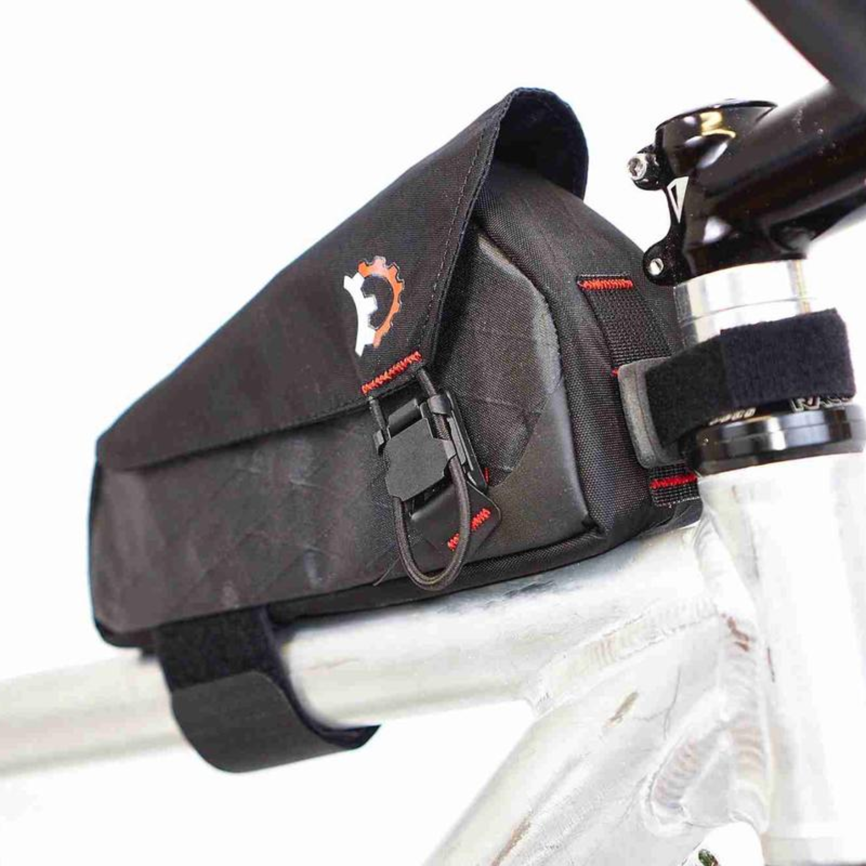 - Beefy top tube strap has grippy material with double back wrap for bomber stability