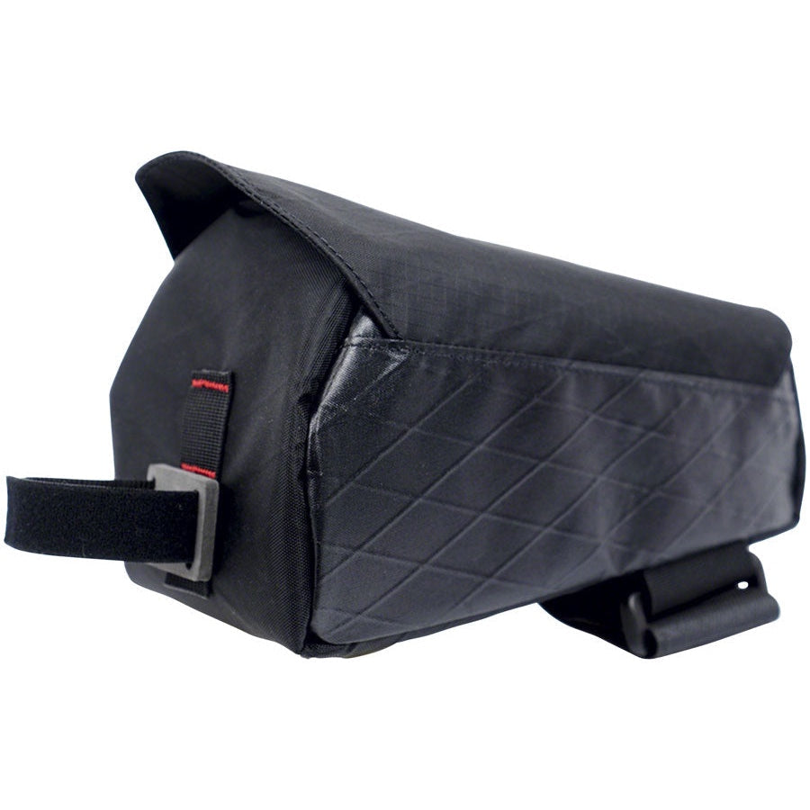 - Beefy top tube strap has grippy material and a double back wrap for bomber stability