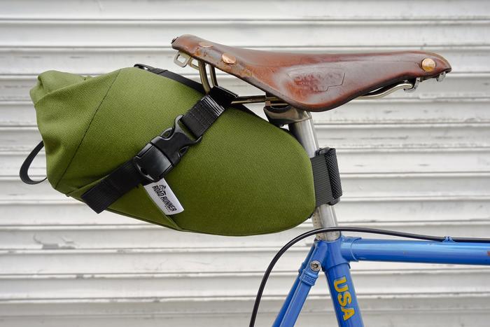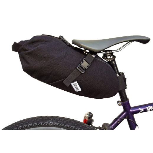 Road Runner has been testing this version of their Sleeper Bikepacking Saddle Bag for the last 2 years and they've got to say: we're quite pleased with the function and fit of this pack. Perfect for stuffing your sleeping bag when on bike camping adventure or use it as a full day bag and store your additional layers and gear with ease. Road Runner has gone ahead and reinforced the base to create a stiff and waterproof seat pack that will continue to last for years to come.