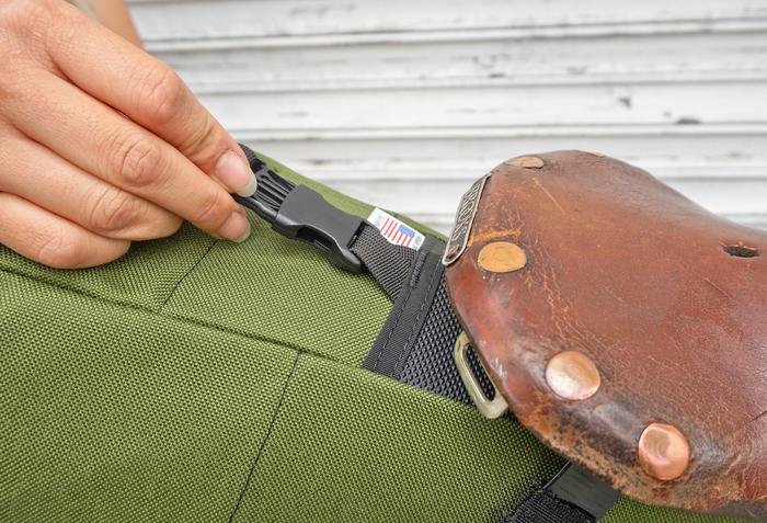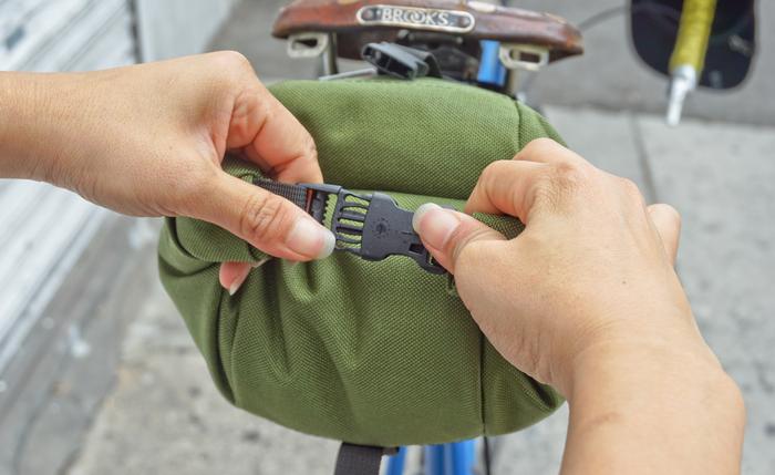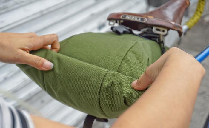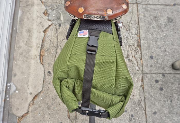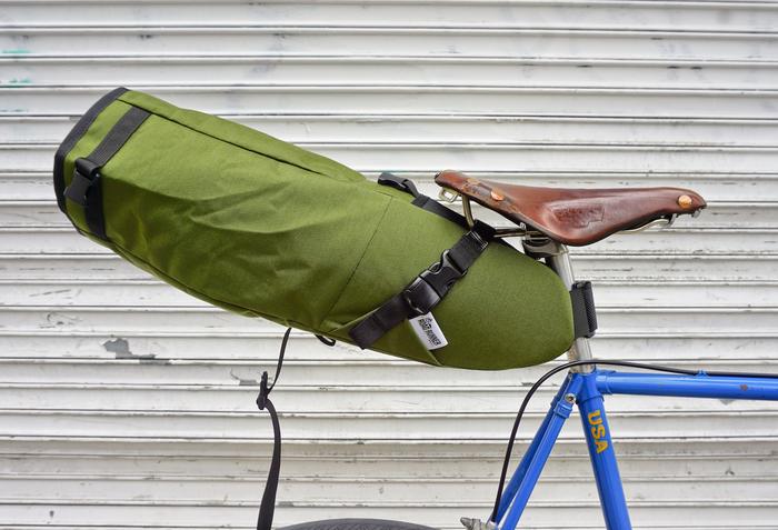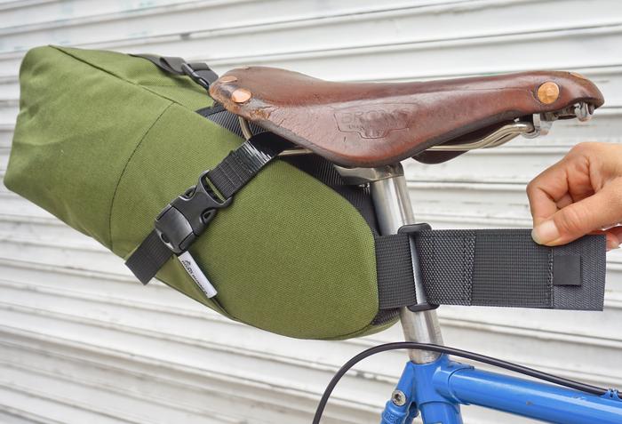 Some of the key features of this bag are not only its rugged material choice but also the use of Mega Grip fabric everywhere the bag touches the seat post, PVC coated webbing for the seat rail straps and cam lock buckles for the side compression straps.