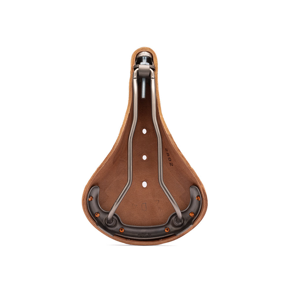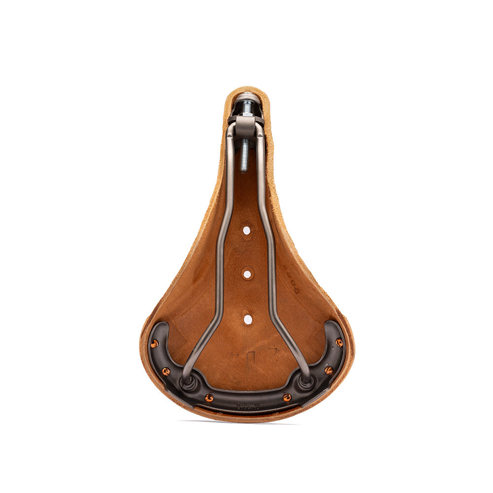A saddle with titanium rails and frame, the Brooks B17 Special Titanium is a light leather saddle finished with hand-hammered copper rivets for longevity. The B17 has been Brooks best-seller for over 100 years, having been featured in their yearly catalog since 1898. Still the best bicycle saddle today, the B17 Special Titanium is made with durable, vegetable tanned Brooks leather for flexible, hammock-like performance that will mould and shape to the rider over time—a saddle perfect for long-distance road, gravel and touring cycling.