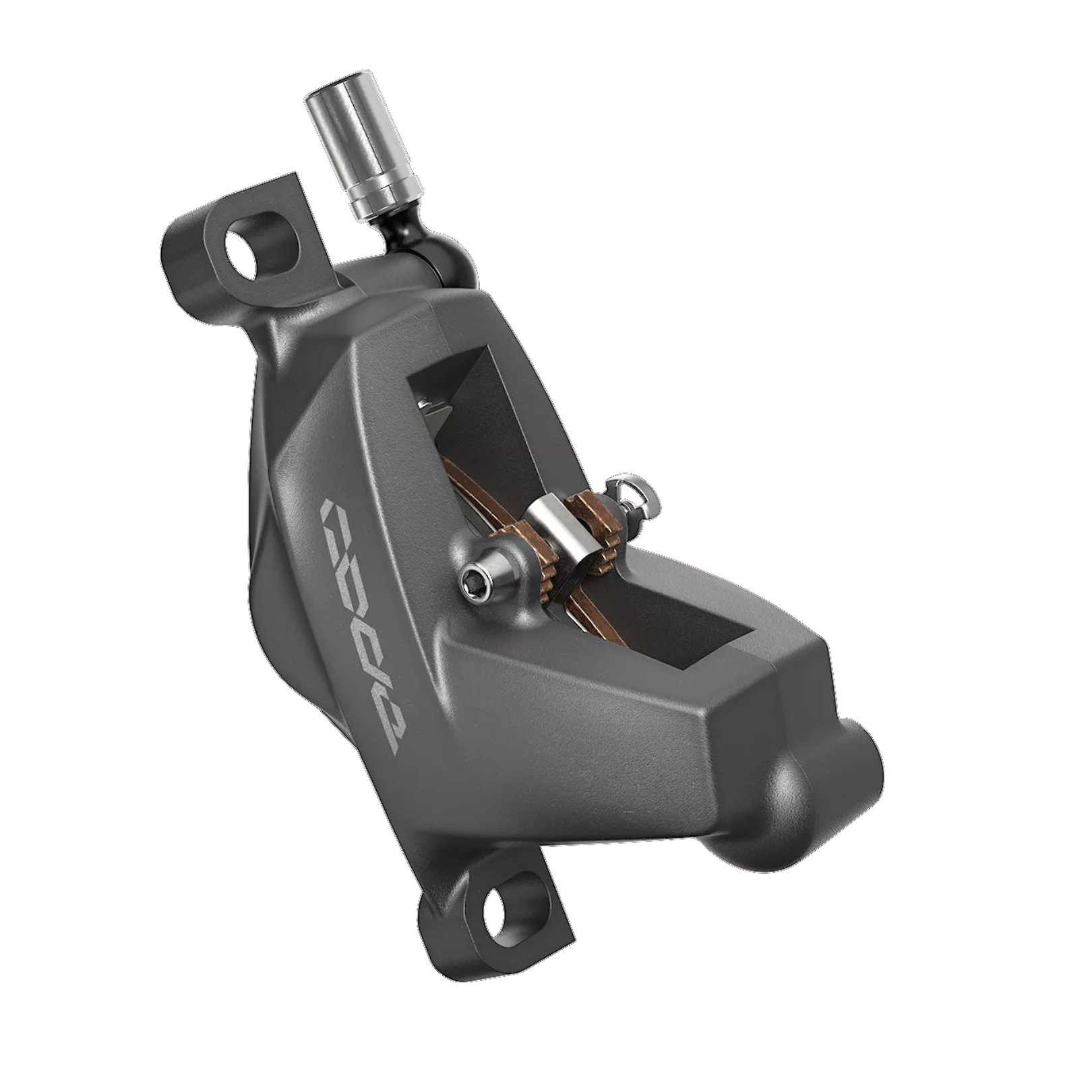 With this new caliper fluid circuitry, the bleed port has been moved to the bottom of the caliper, and all four piston bores can communicate. This way, during bleeding fluid naturally fills the caliper, resulting in an easier, more consistent bleed.