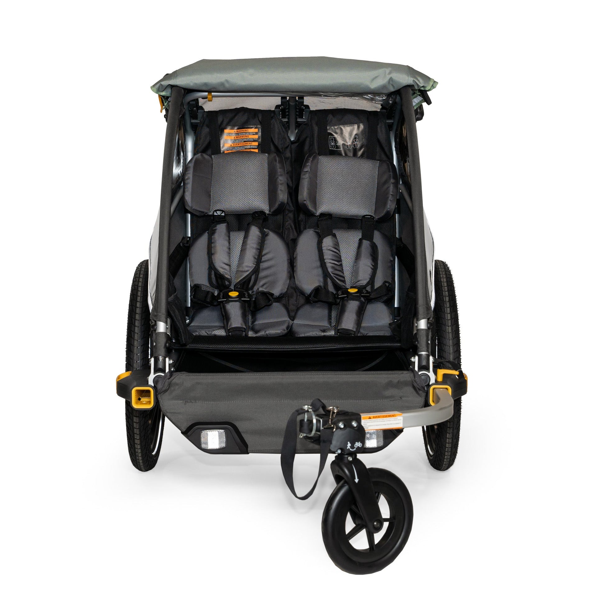 For ultimate kiddo comfort, look no further than the D'Lite X bike trailer and stroller. Adjustable suspension, independently reclining seats, and premium seat pads keep little ones comfy so you can enjoy longer bikes rides together. Available in single and double passenger models, and with multiple conversion kit options, the D’Lite X is made to fit your family’s adventure style. Available in single or double seat models.
