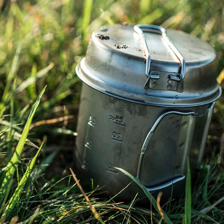 The Trek 900 is crafted from Japanese titanium using a historic manufacturing process. Use it to measure, strain, or boil over any heat source. The Trek 900 is large enough to stow a 250g fuel canister and a GigaPower stove, or a Trek 700, and fits inside the Trek 1400. With its compact folding handle and ultralight qualities, the Trek 900 is an essential piece of cookware for car camping or in the backcountry. Pair the Trek 900 with the GigaPower Stove 2.0 for a backcountry set-up.