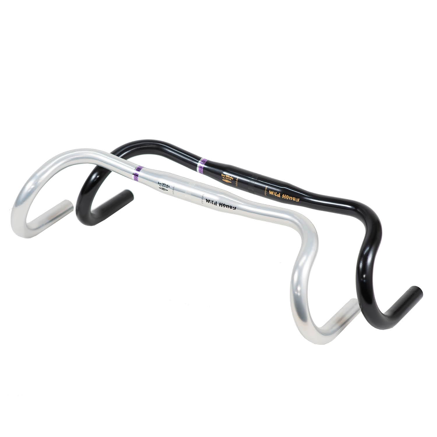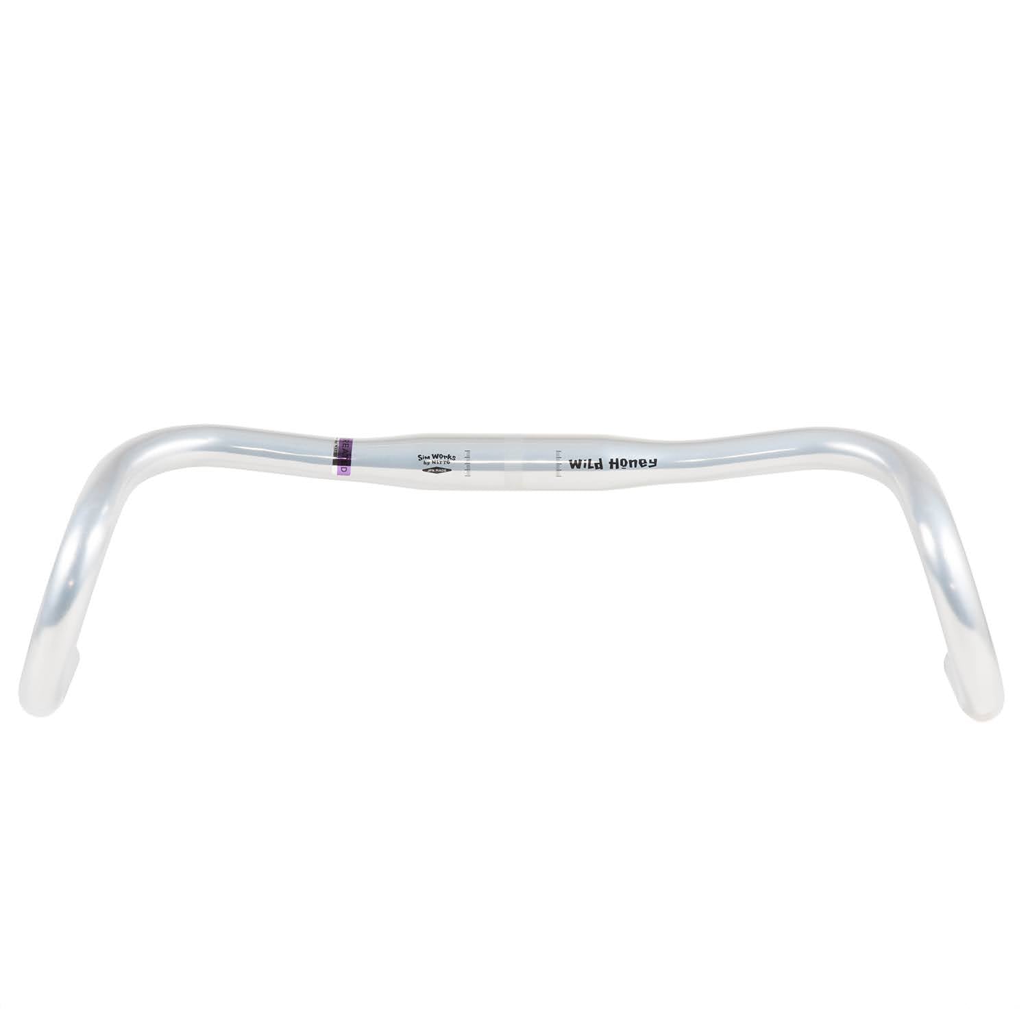 The Sim Works Wild Honey Bar is updated from NITTO’s masterpiece, B135AA Randonneur bar. With a reach of 104 mm, drop at 120 mm, and approximately 7 mm of rise to the ramps, the bar also flares a bit to the drops. Clamp diameter is a more modern standard of 31.8mm and the bar is constructed of heat treated polished aluminum.