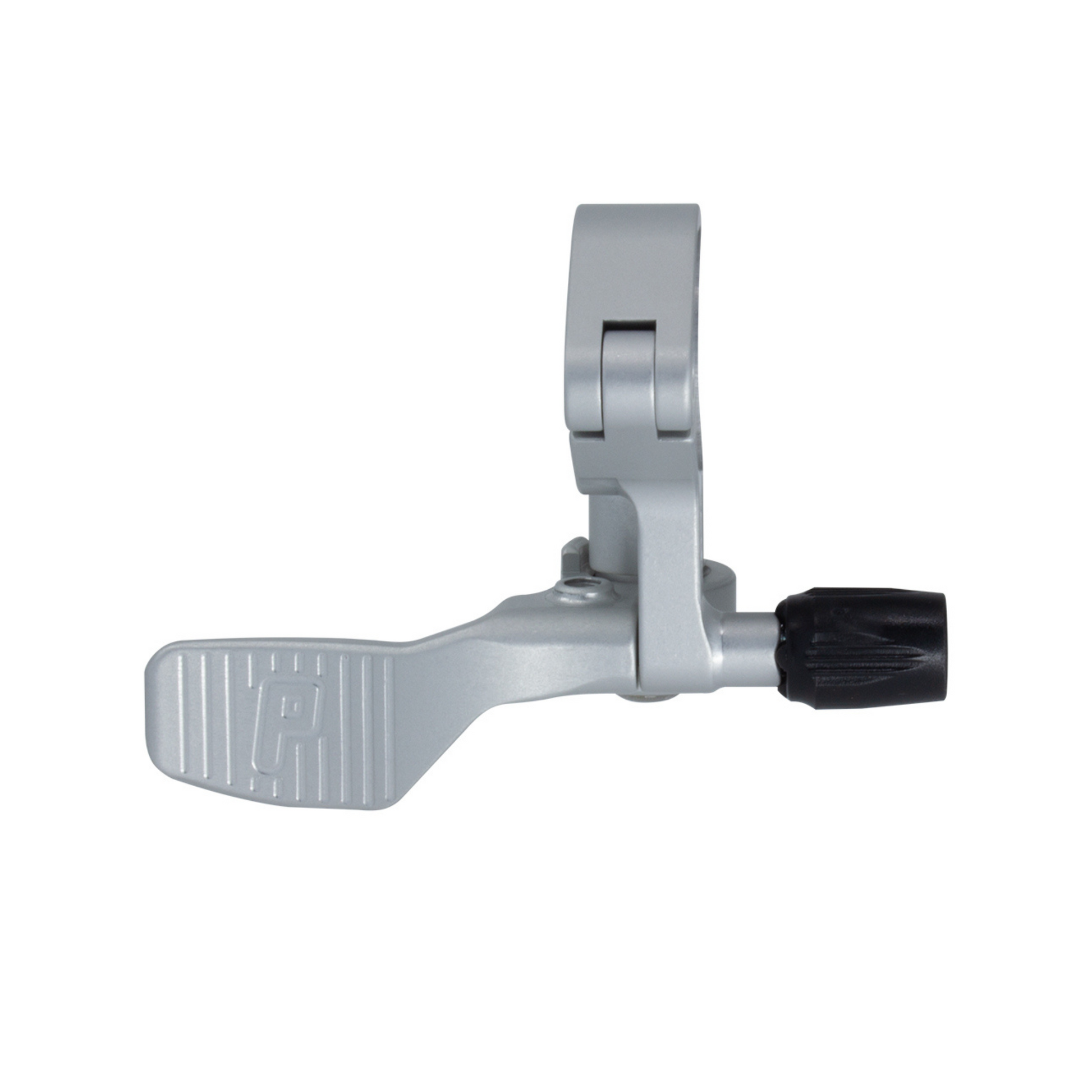 Paul's engineers were obsessed during the design process, torture tested the hell out of various prototypes (including numerous crashes) in the toughest terrain in the Sierra Nevada mountains for over a year. The final production version uses dual stacked sealed cartridge bearings in the pivot for zero slop and long (serviceable) life, a pinch bolt and cable head recess allowing you to run the cable in either direction (some droppers pinch the cable at the seatpost, while others pinch the cable at the trigger), a hinged clamp so you can install it without removing the grip, and a little barrel adjuster for fine tuning the cable tension.