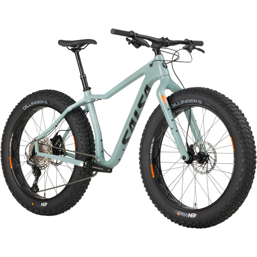 The Salsa Heyday! C Deore 12 is a carbon fat-tire bike with the versatility to go wherever your imagination takes you. The carbon-fiber frame keeps weight down — especially nice when you’re hefting it over downed trees deep in the backcountry. The 26 x 4.6″ tires float over snow, sand, and other soft surfaces, but you can also fit 27.5 fat and 29+ wheels and tires for other missions. A mind-blowing number of cargo and accessory mounts let you bring more than just the bare necessities, and Heyday!’s geometry ensures a stable ride even when loaded. Alternator 2.0 dropouts allow for multiple drivetrain options, but the stock Shimano Deore 12-speed is the perfect place to start.