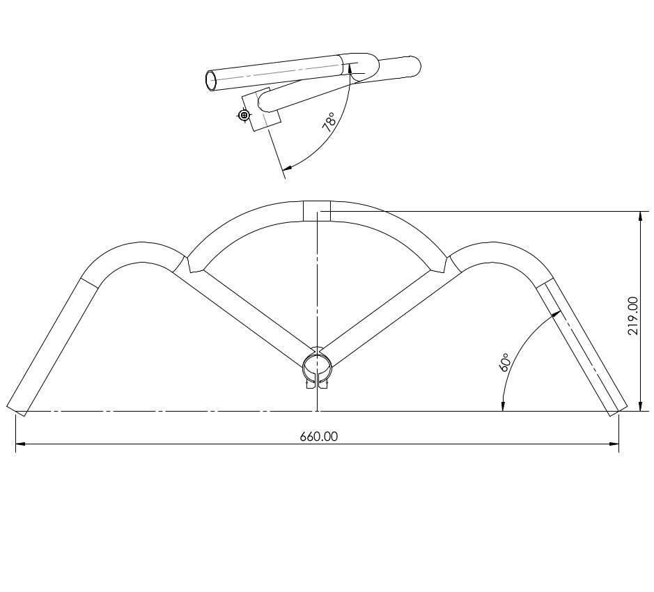 Made from 4130 chromoly steel, this bar has a bunch of details that really makes it special. The steel is heat-treated, the tubing of the bar has multiple butting profiles, the front cross bar is slightly flattened for your lights and/or gizmos, and the system has been tested to stringent MTB standards. All in all, the Granola-Moose makes for a fun, unique, and comfortable upright handlebar.