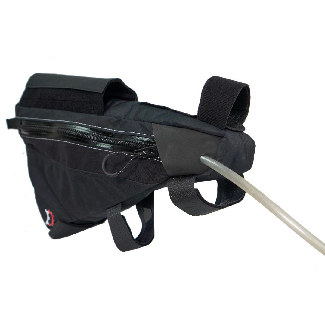 You can purchase the Choss either with or without the custom hydration system. The hydration system includes a custom Revelate X Hydrapak 1.5 liter water reservoir, Plug n’ Play hose for easy refilling, and their Barnacle handlebar clips.