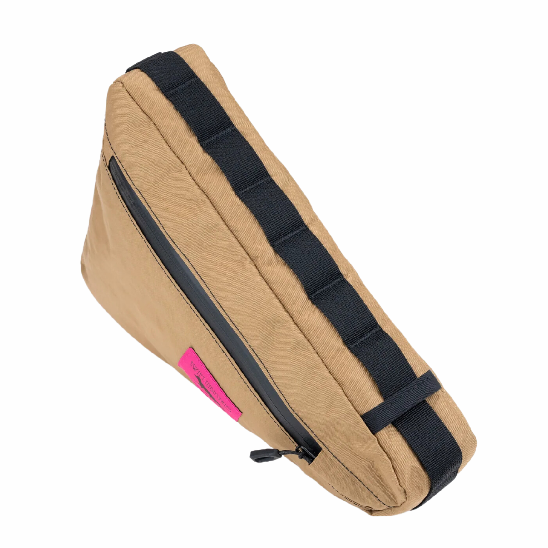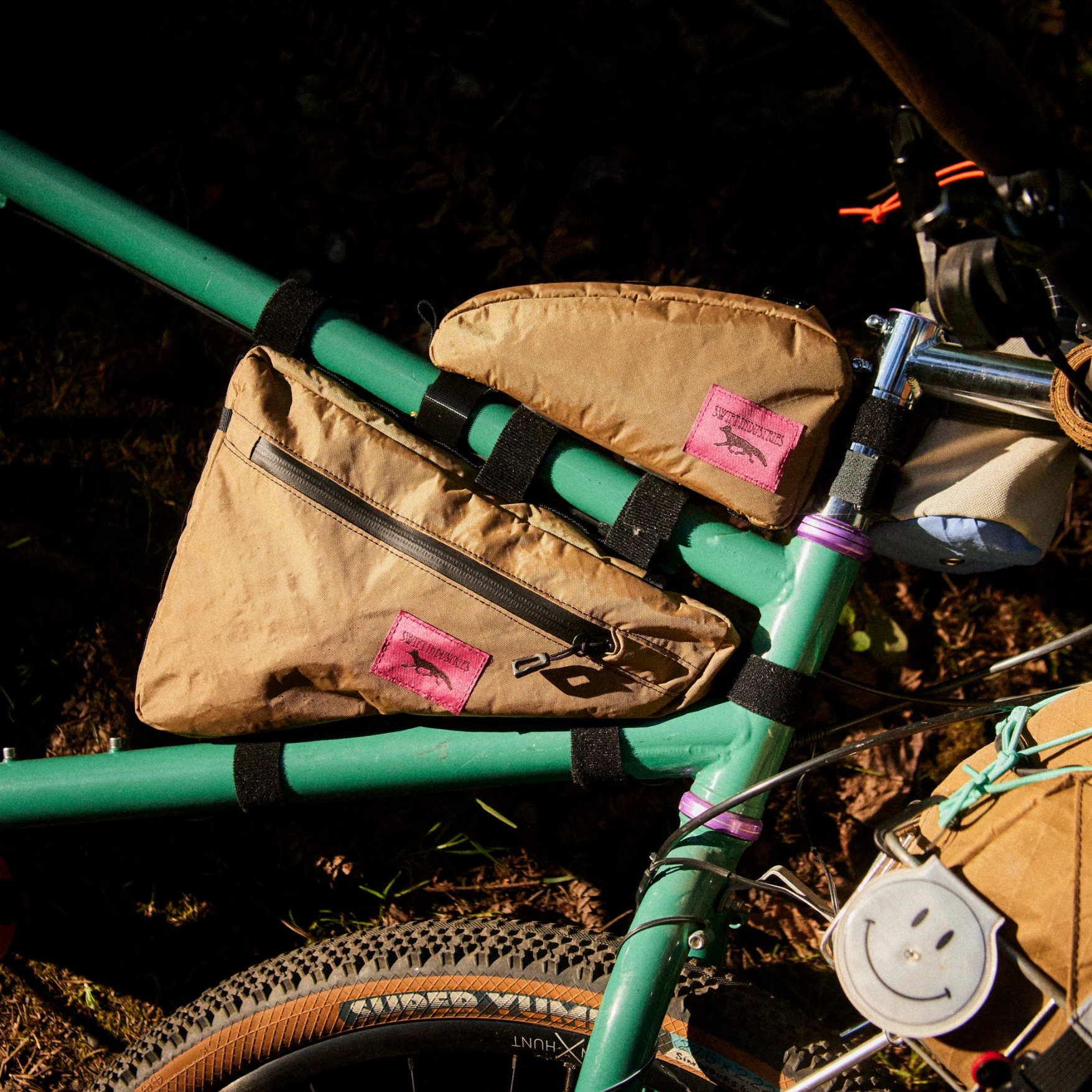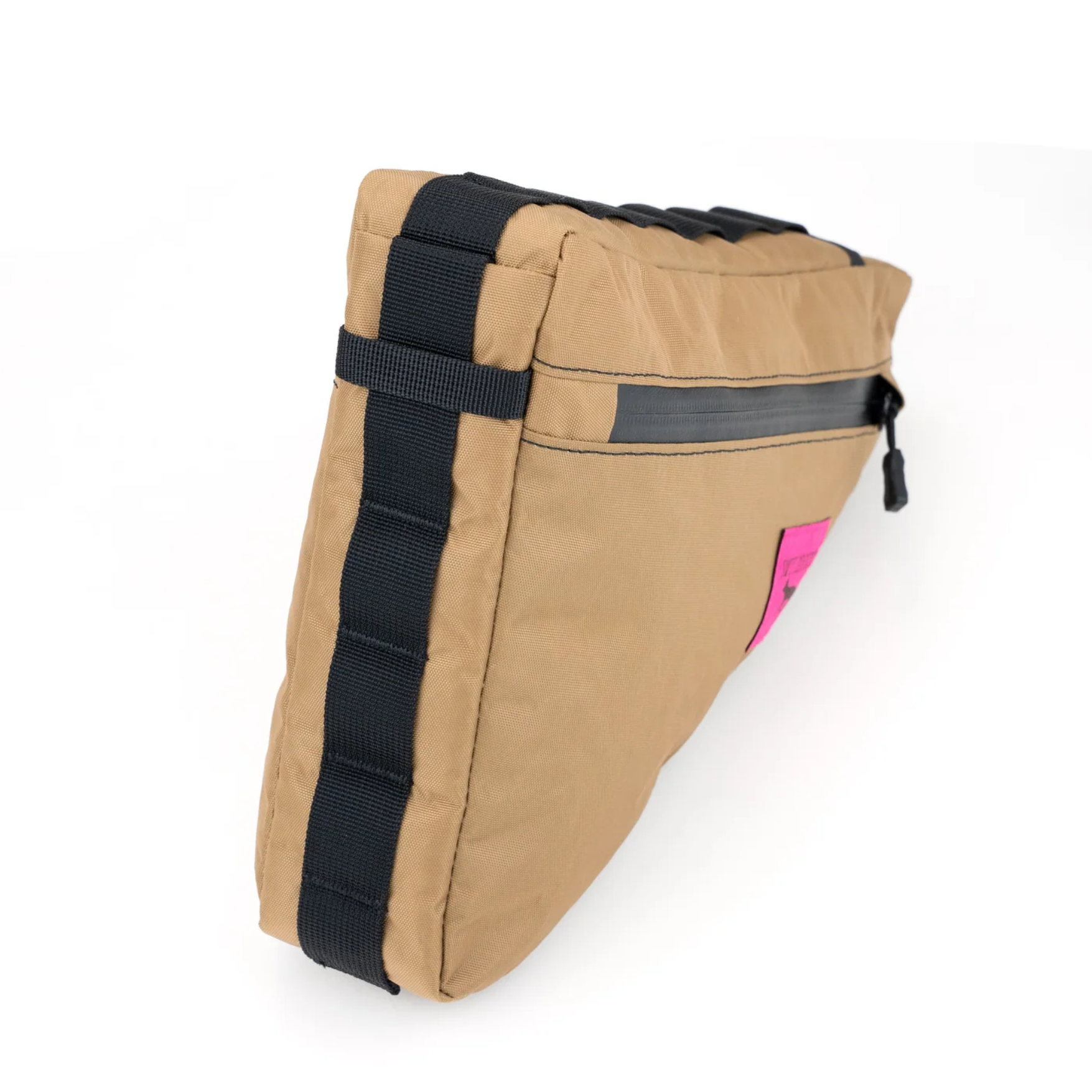 Hit the road with the Giddyup Wedge Frame Bag, a versatile pack built for rambunctious trails and mellow commutes alike. The Giddyup boasts 3 liters of out-of-the-way carry capacity, tucked inside your bicycle frame's triangle. A spacious main compartment with a hydration hose outlet, and a shallow pocket on the non-drive side keep your quick draw essentials shielded from the elements with water resistant zippers. The bag’s adjustable webbing daisy chain ensures a snug fit across different bicycle sizes. Now get on your bikes and ride, Yee Haw!
