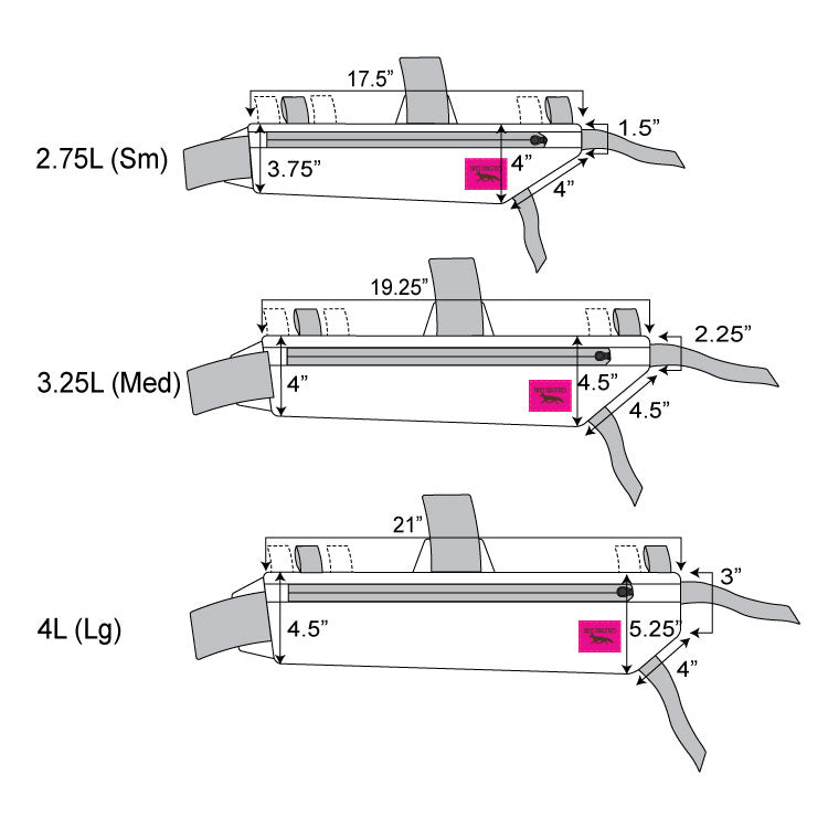 | Small | 17.5” X 4” X 2.25” | 2.75L | 5.75 oz |