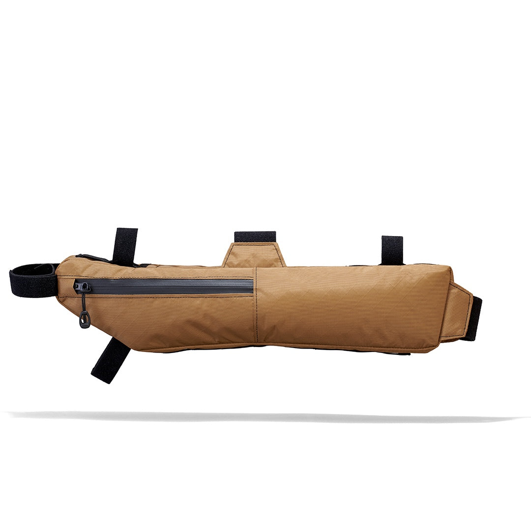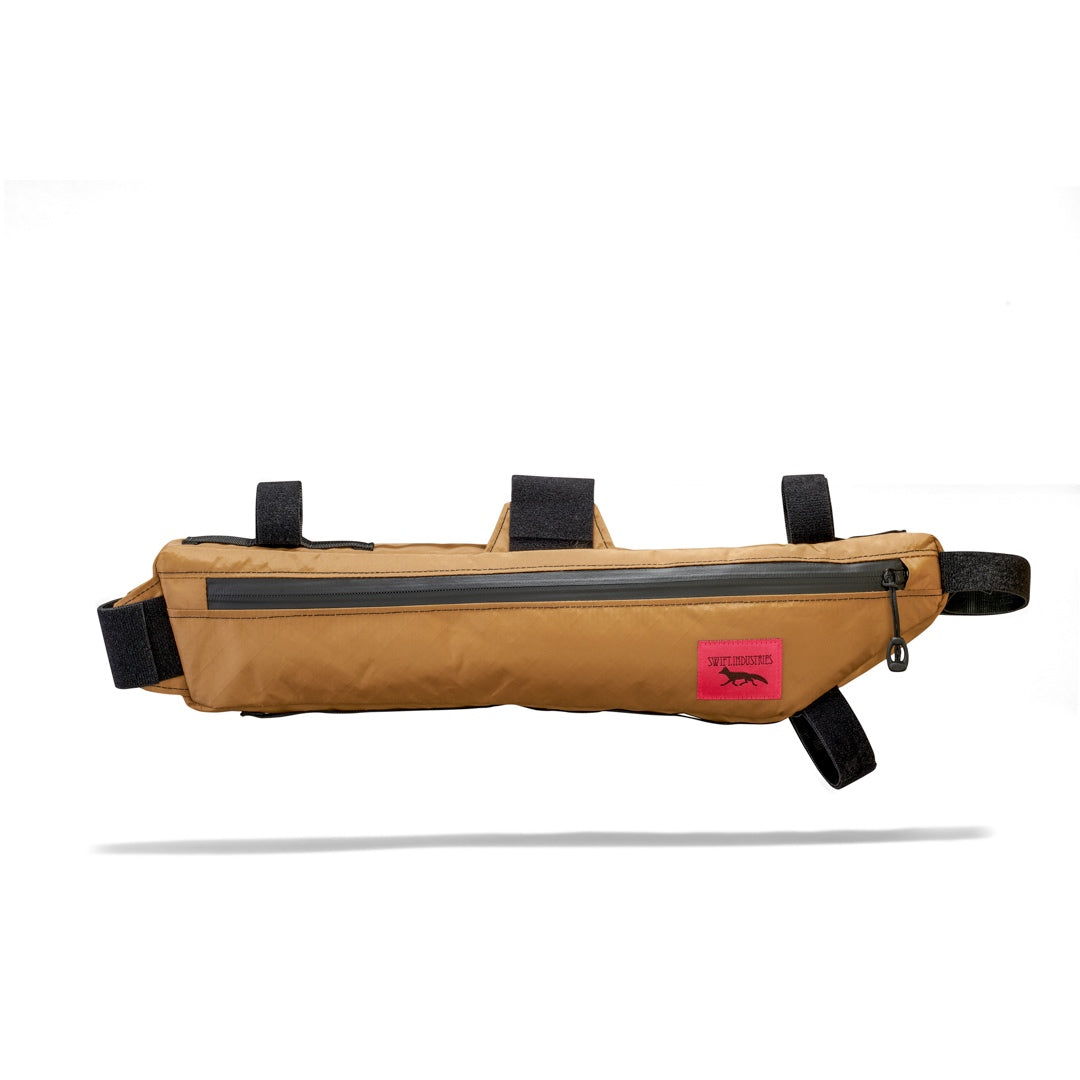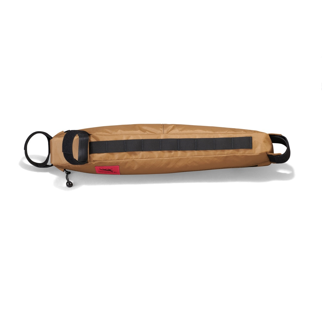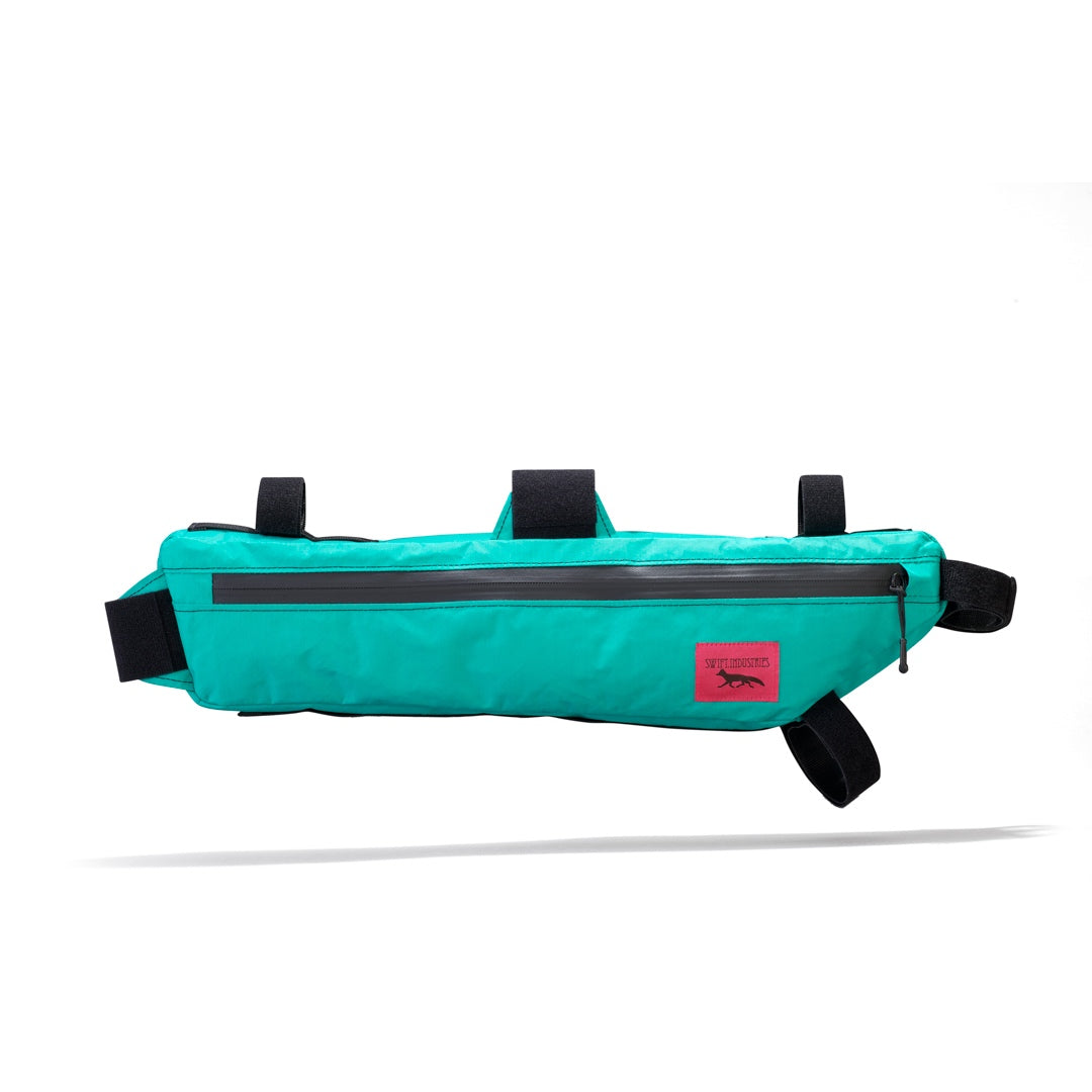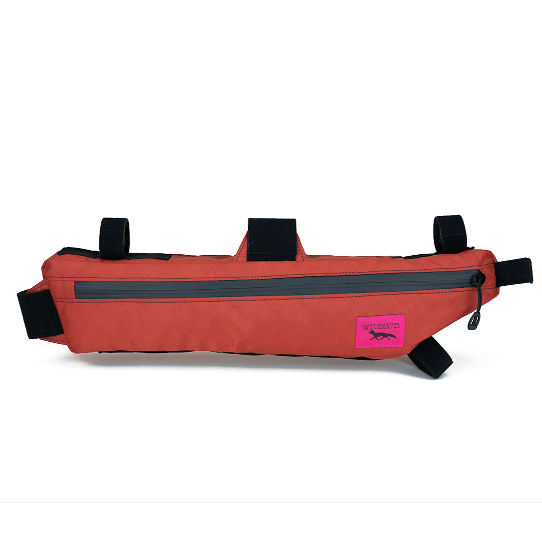 The space beneath your top tube has always been a coveted zone for convenient and spacious storage capacity, and with the Hold Fast Half Frame Bag, Swift Industries has at last entered the triangle! The roomy main compartment, accessed by a water resistant zipper, is a perfect home for long or oddly shaped items commonly used by cyclists — think pumps, locks, water bladders, etc. On the non-drive side of the bag you will find a small zipper pocket with room to stow a wallet and snacks. There’s even more to the Hold Fast Half Frame Bag: on the underside we added an external daisy chain that runs the length of the bag to give you the flexibility to add capacity or quickly lash on last-minute or mid-ride items to the bottom.