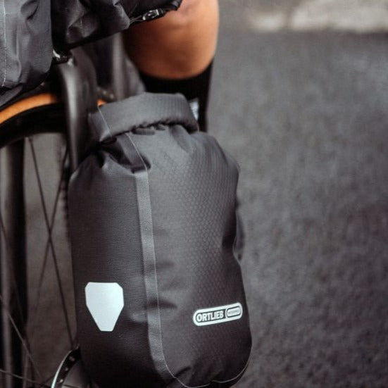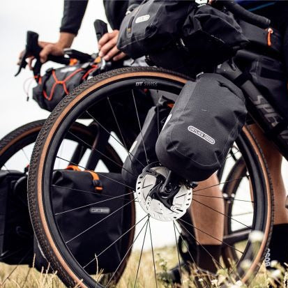 The waterproof Fork-Pack offers even more storage space for your next Bikepacking adventure. This practical fork bag weighs as little as 290 grams including the adapter (for the 4.1 L size, 315 grams in the 5.8 L size). With the help of the QLS adapter, this ultra-light bag can be mounted on forks with integrated accessory mounts, as well as on forks without special accessory mounts, as long as the fork legs have an untapered diameter between 30 and 42 mm. In fact, using the supplied adapters, you can attach the bag to any straight, vertical tube of that diameter. The bag features ORTLIEB’s tried-and-true roll top closure, and the included Quick-Lock S adapter system allows you to attach and detach the bag in no time.