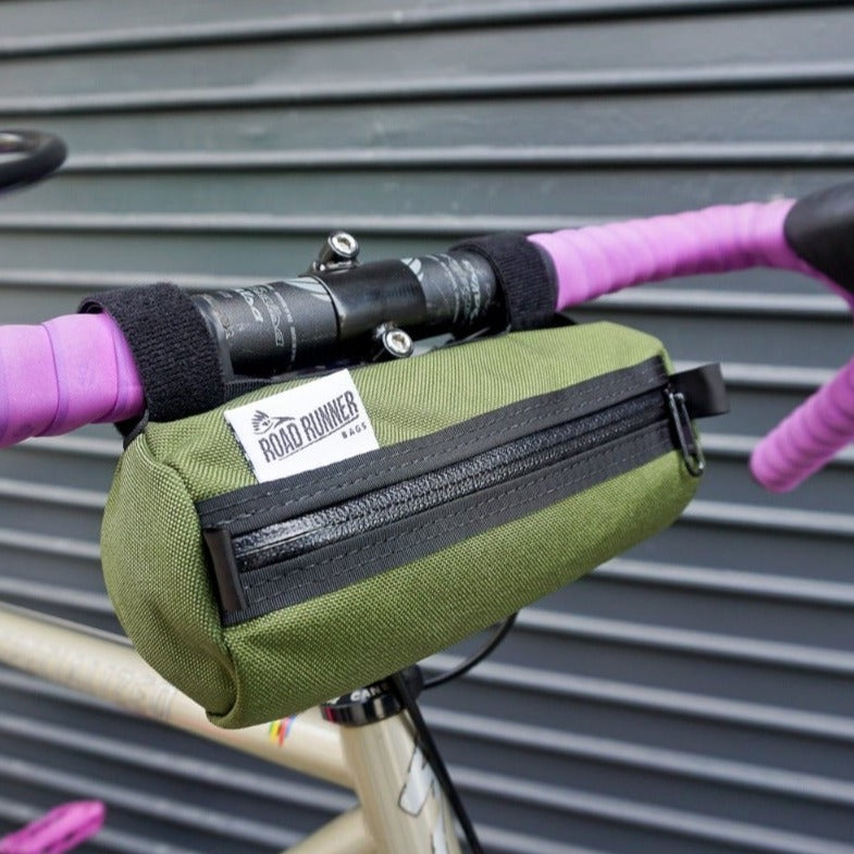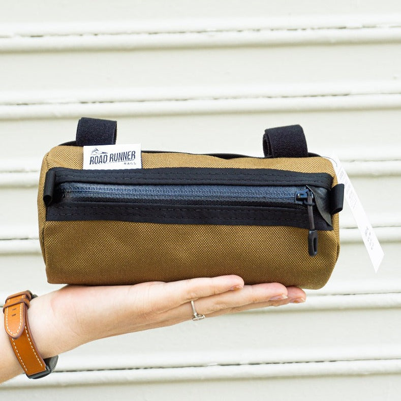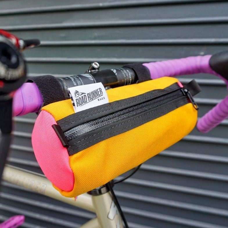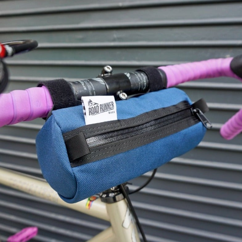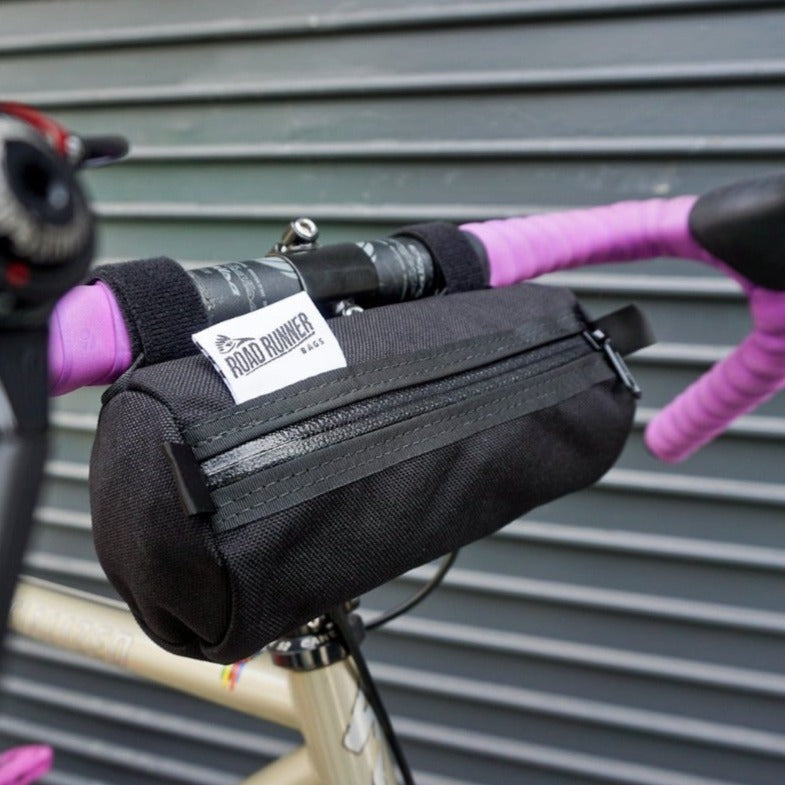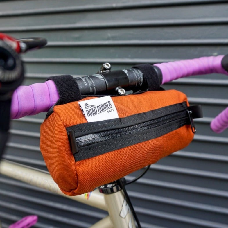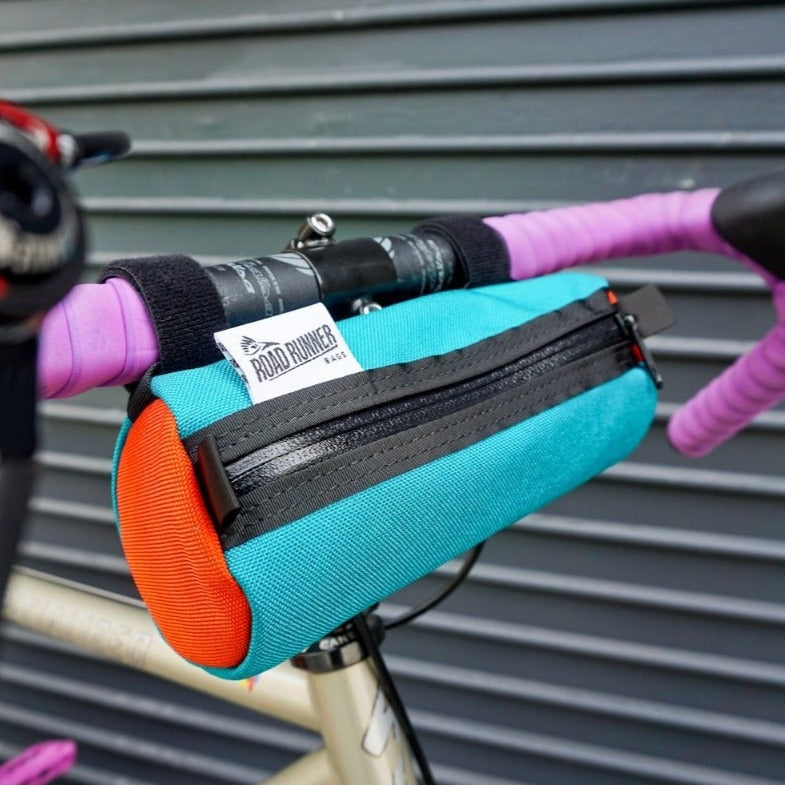 The original Burrito Handlebar Bag from Road Runner! First made in 2011, this handlebar bag is the staple of our Burrito Bag line and, available in 6 different colors to match your bike. This simple handlebar bag adds that extra bit of storage for daily rides. Never find yourself unprepared with this perfect little stash bag to store your tools, keys, wallet, phone, snacks & packable clothing layers.