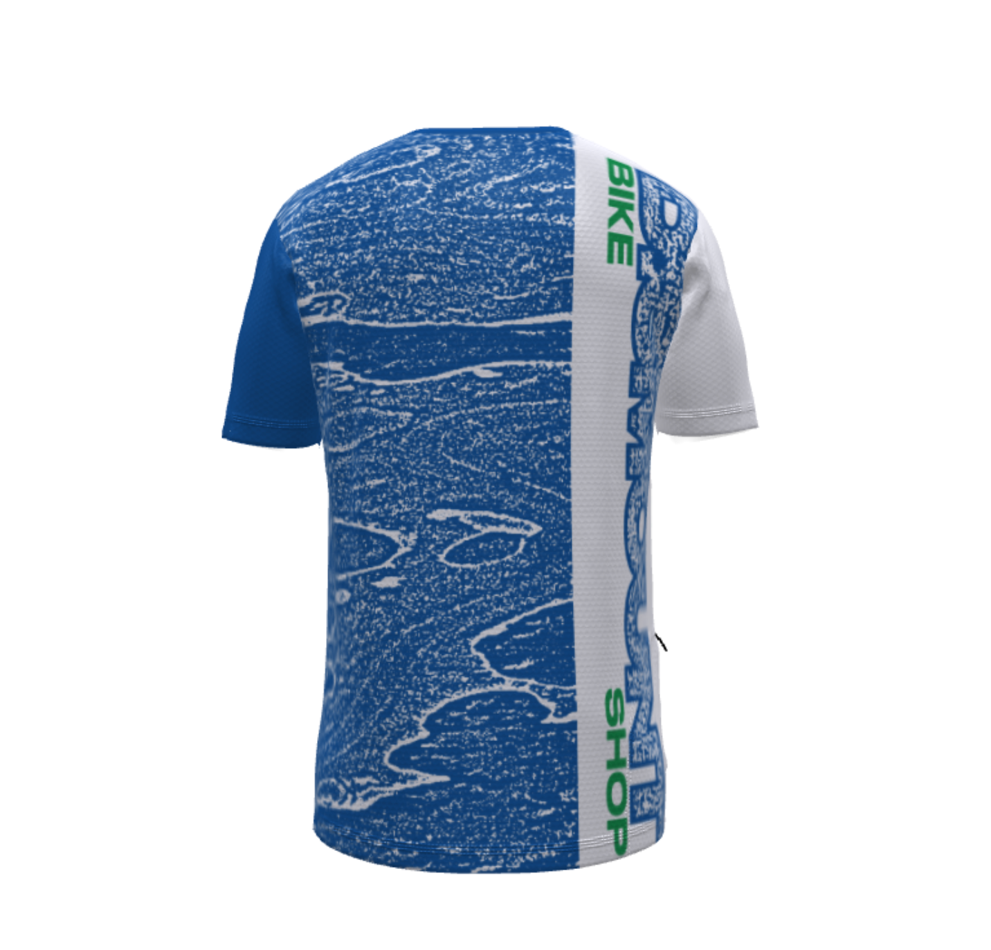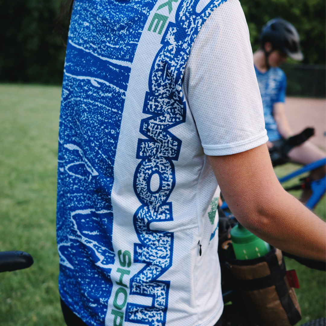 "I wanted this jersey to bring together a lot of the elements we got turned on to when we started riding - the wraparound print and colours come from a wetland near where I grew up, and I used a DISMOUNT wordmark that looks more at home on a rave flyer than a cycling jersey. Hopefully it speaks to someone and turns them on to cycling however they interpret it."