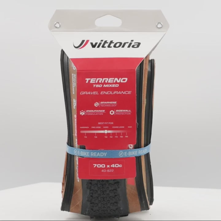 Vittoria's Tubeless Ready casing keeps pressures stable and improves comfort and traction. Whether you are tackling long gravel adventures, spirited group rides or mixed surface commutes, the Terreno T50 brings balanced performance that feels quick yet controlled. Available in classic Black or a timeless Brown Wall finish.