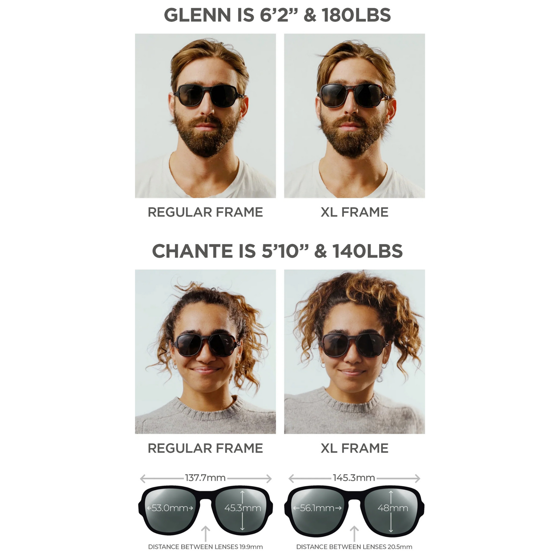 The Ombraz Teton are a square frame with a keyhole nose bridge blends inspiration from famous Wayfarer and Clubmaster styles - balancing style and function. Built-in, mini visors reduce peripheral glare. Available in Regular and XL.