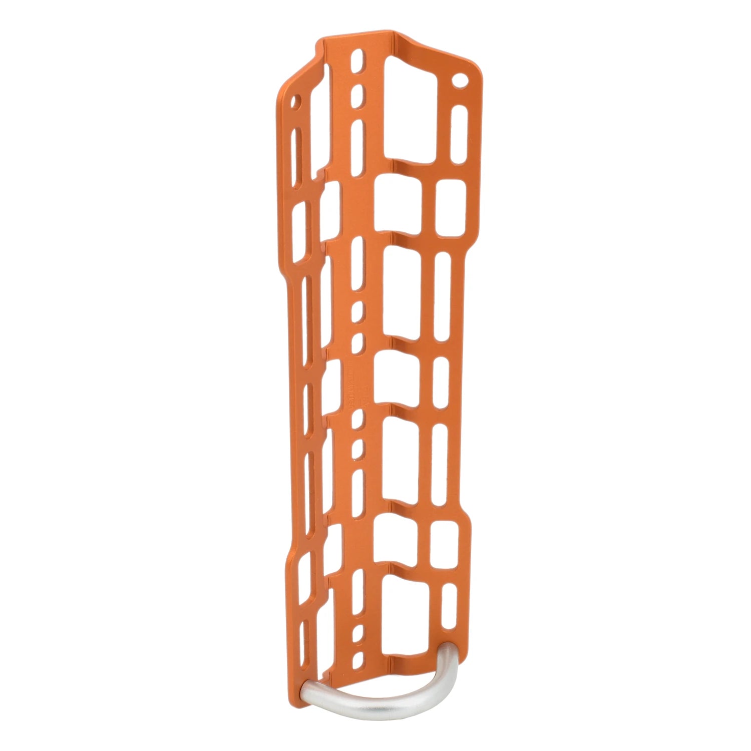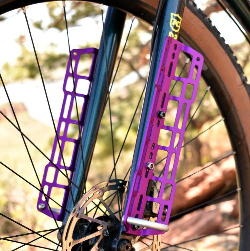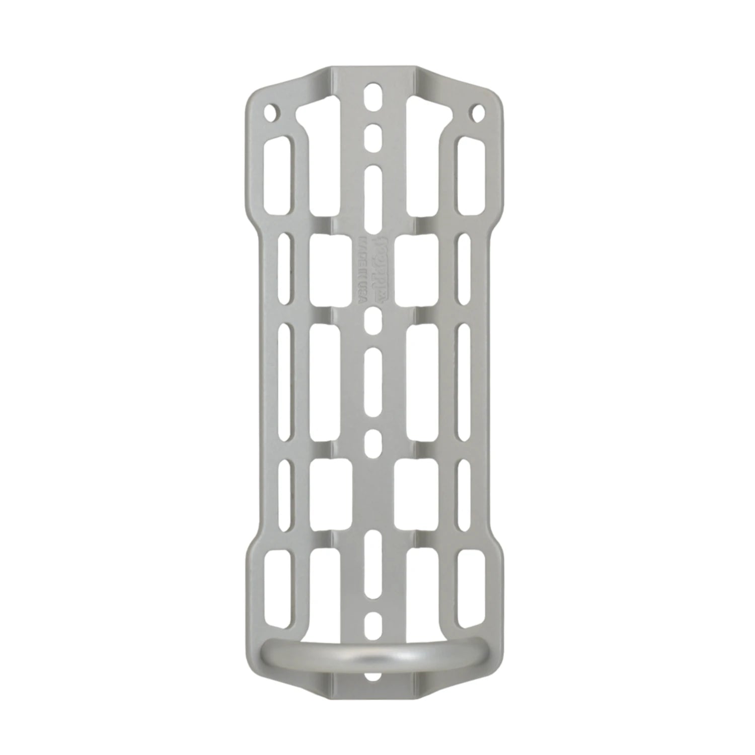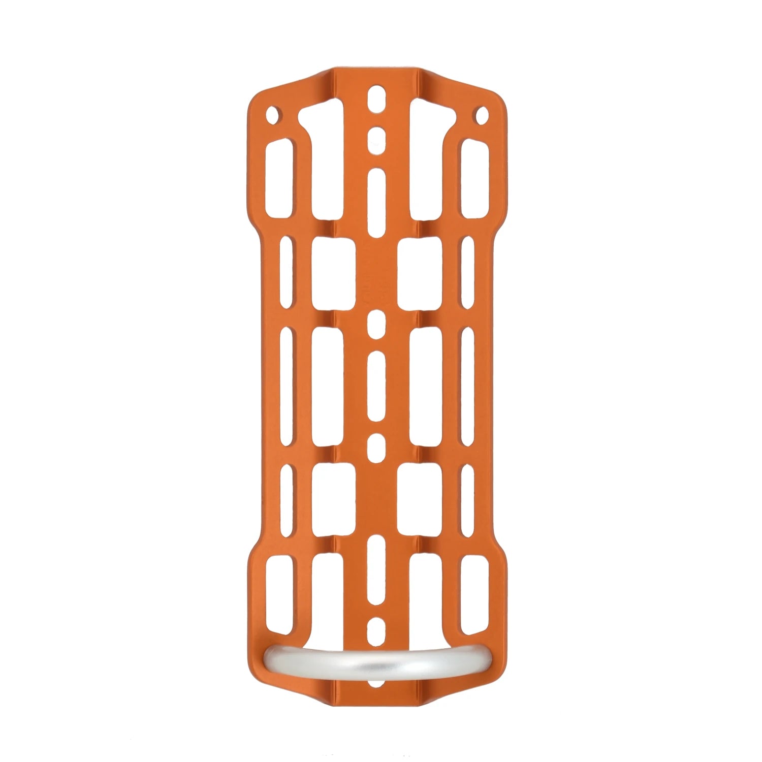 Constructed from durable and lightweight 5052 aluminum, this cargo cage comes in anodized finishes of Black, Silver, Purple, and Orange. The regular size weighs only 78g with the load support, while the Mega version weighs 98g, making it one of the lightest cargo cages available.