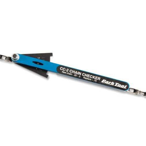 To alleviate poor shifting and uneven drive train wear, manufacturers recommend chain replacement before rear cog replacement. Now you can quickly and accurately determine the wear and stretch of any chain with the Park Tool Chain Checker. Simply insert the Chain Checker’s pins into two links, lightly press the swing arm gauge, and then check the gauge window for an accurate reading.