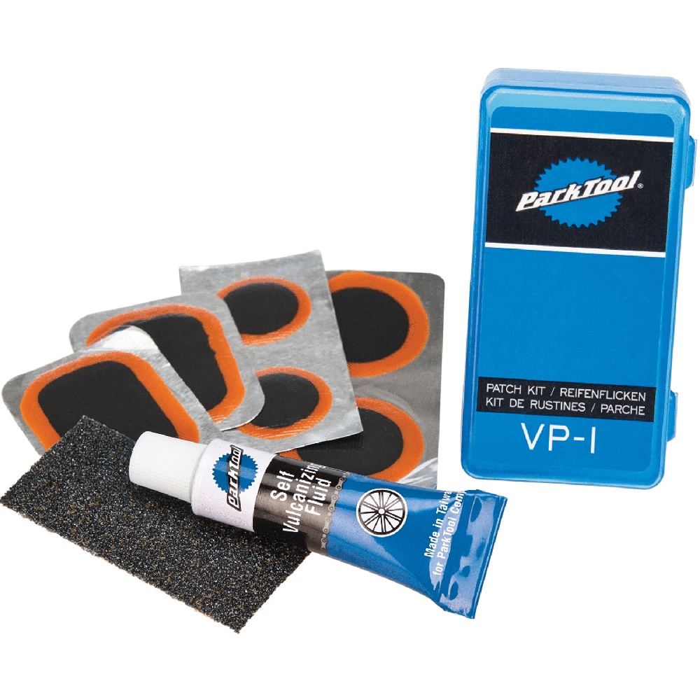 The Vulcanizing Patch Kit includes six thin and flexible patches with tapered edges to blend with the tube's profile.