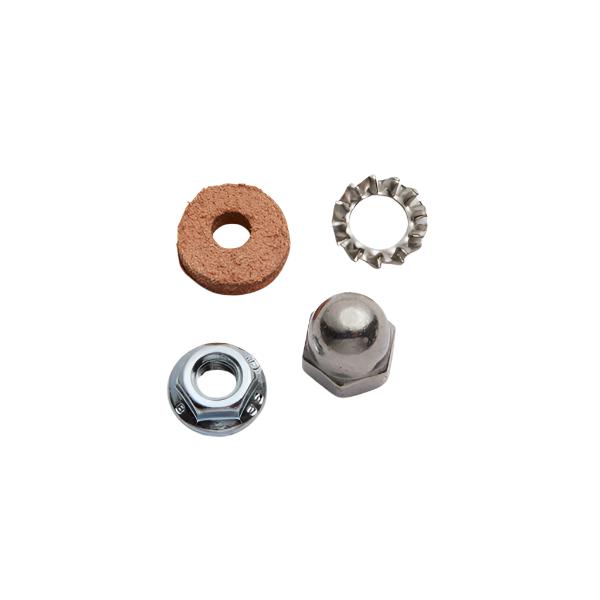 - Nut with built-in washer and leather washer for fender mount