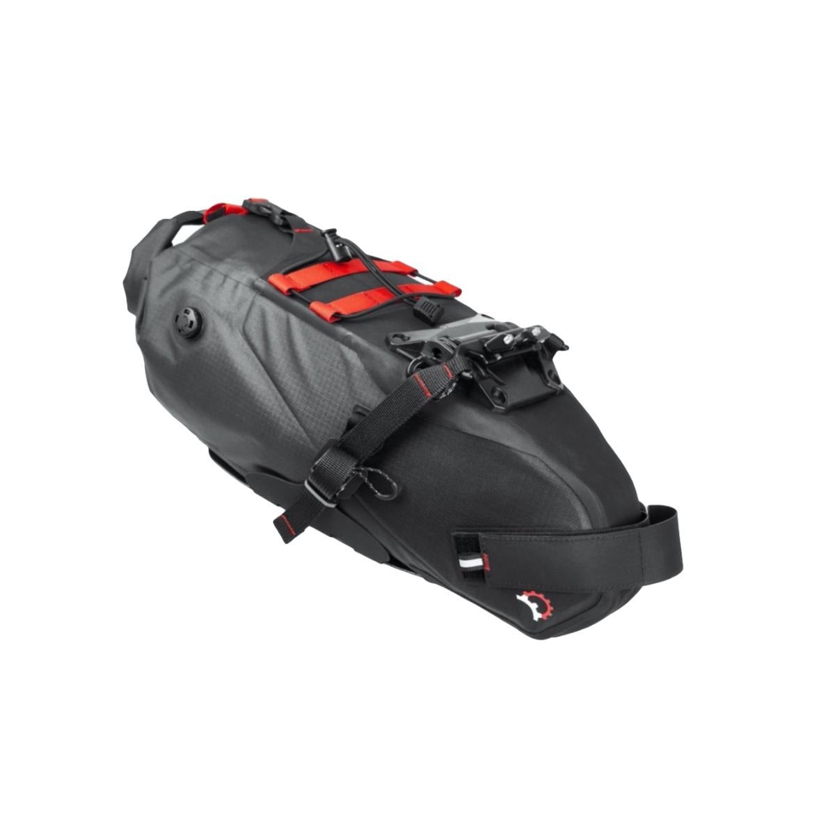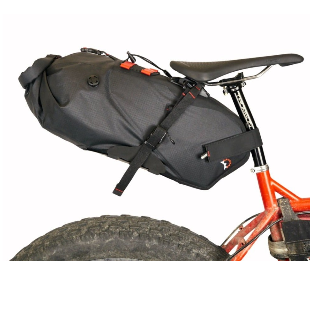 There are two size options, neither of which sacrifice features for capacity. The Spinelock 16L is the larger seat bag and is perfect for longer trips, cold weather adventures, or if you just like to pack extra. If you have minimal tire clearance or are going on warm weather adventures we recommend the Spinelock 10L.