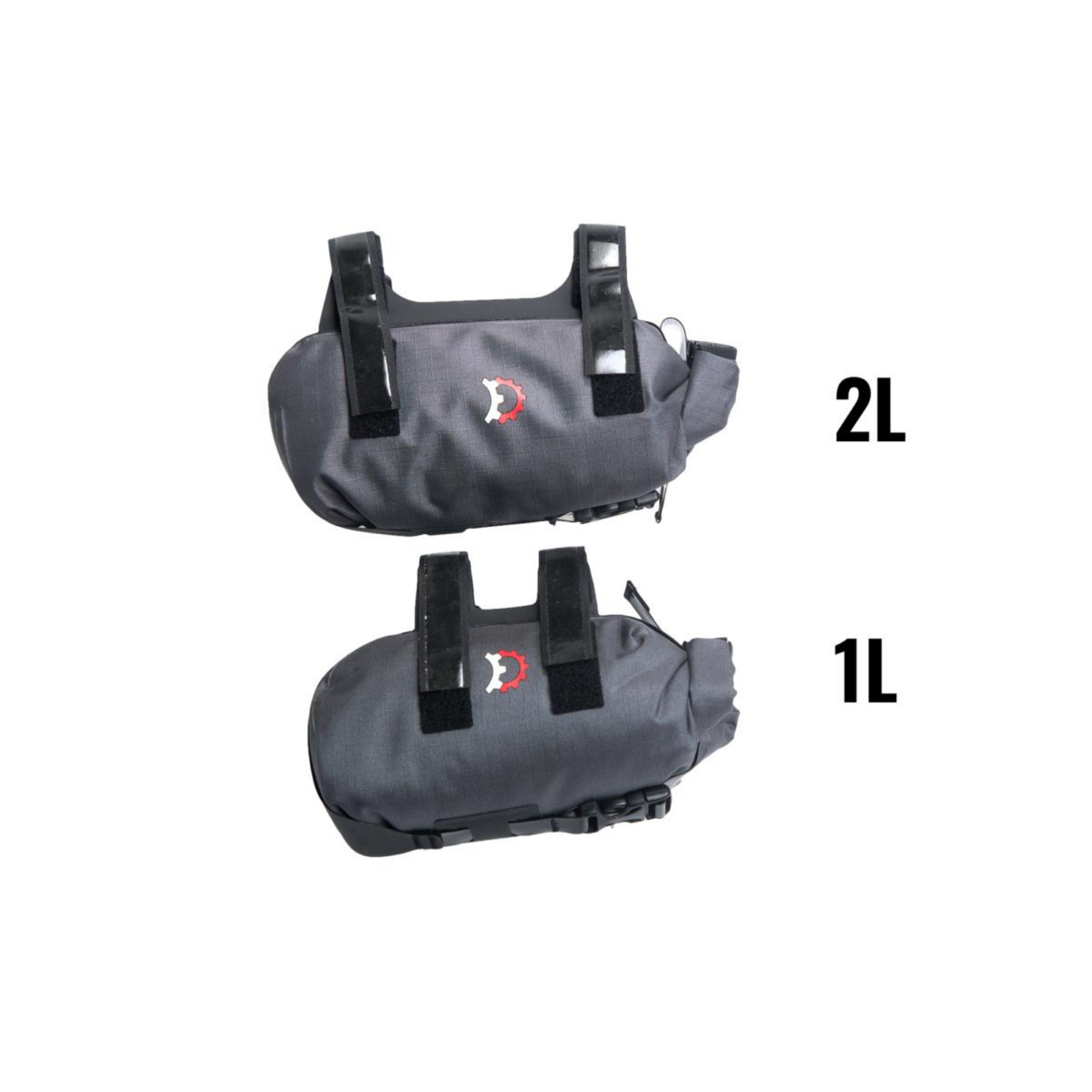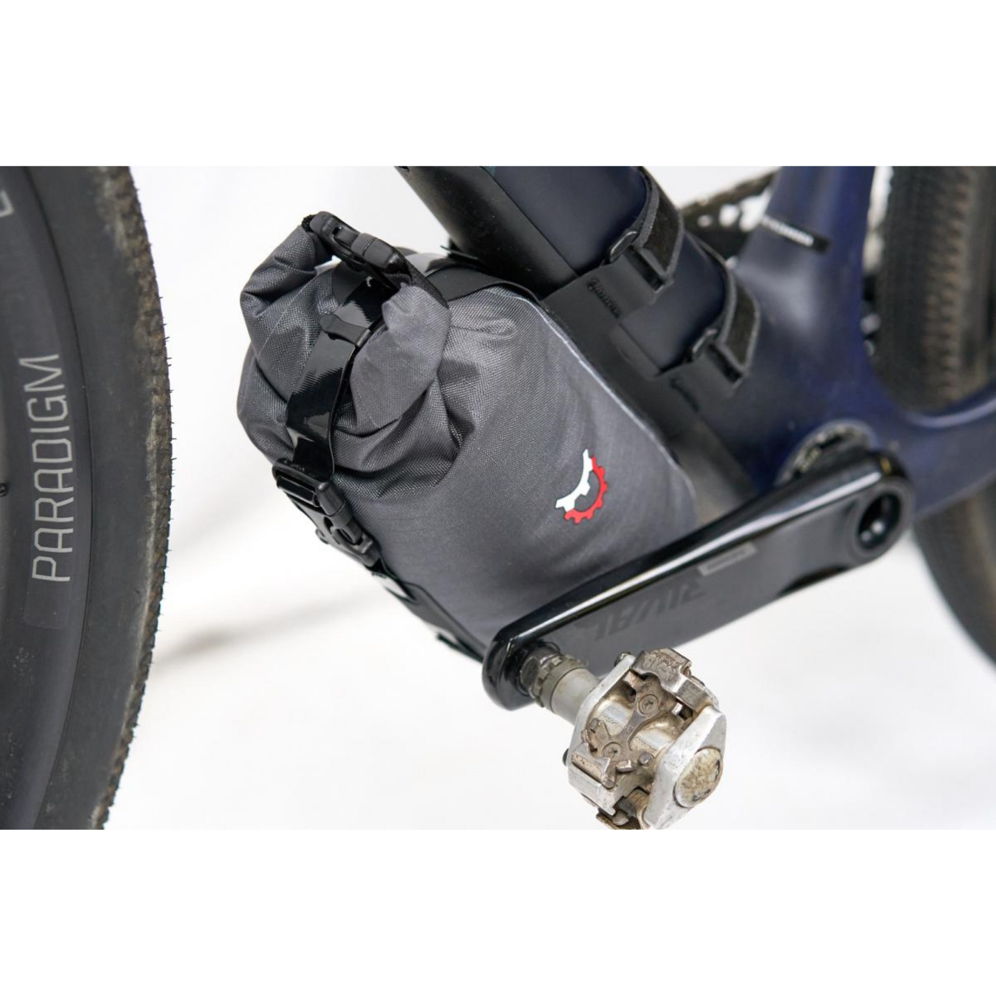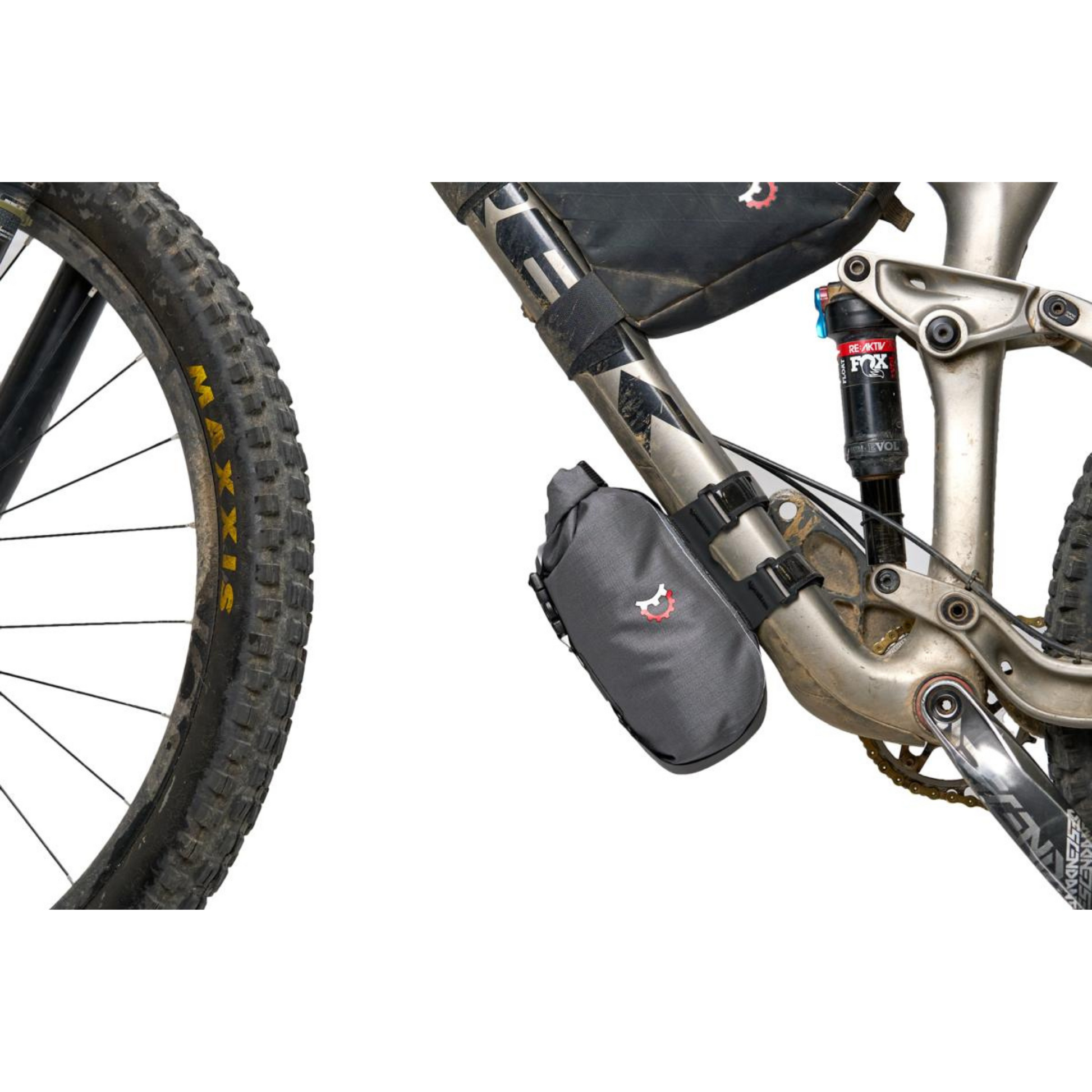 1L Joey: The compact 1L size fits bikes with limited tire clearance and narrower width cranks. It easily holds a 4 oz fuel canister, repair gear, or spare parts.