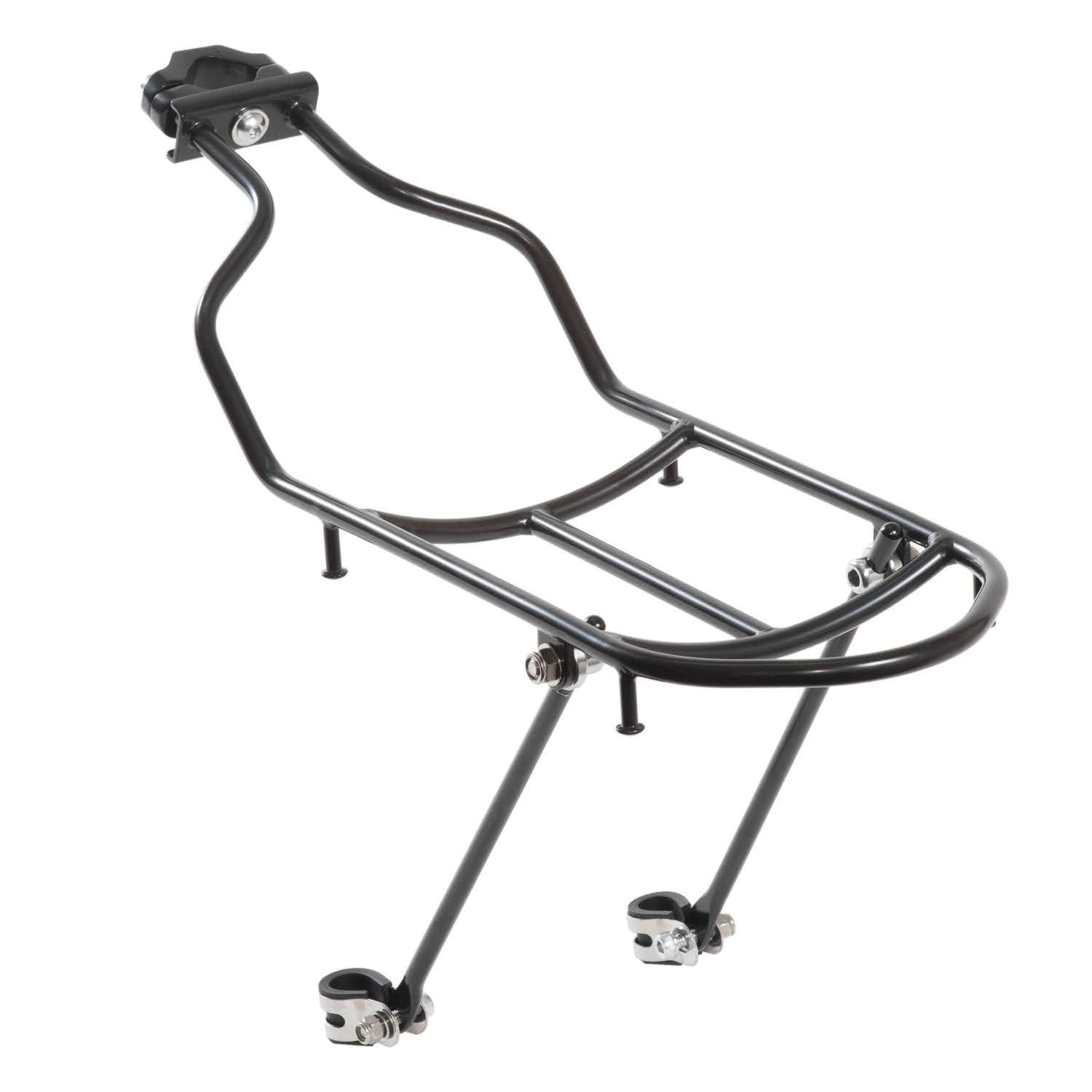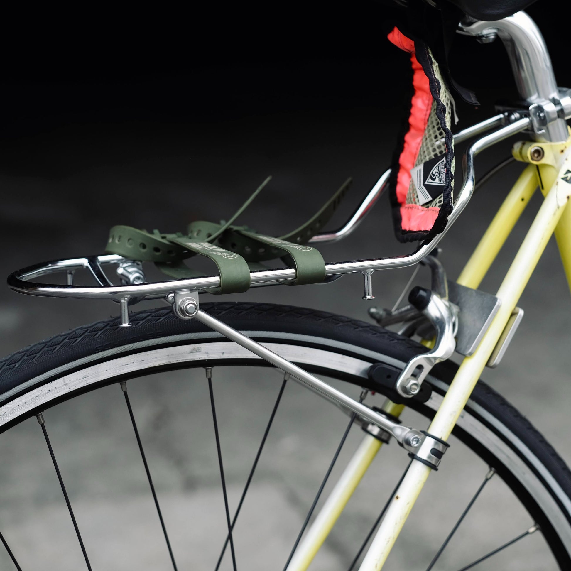 Sim Works' new rear bag support is a highly adaptable compact carrier produced by their partners at Nitto. Able to be mounted on a wide range of cycles, the Burrito rack is a suitable way to carry a compact load, whether as a support for a bag attached to your saddle, or as a standalone rack that a small bag, stuff sac, or sleep roll could be attached to. The rack's decking is constructed of tubular chromoly. The adjustable struts can be eyelet mounted or you can use the included band clamps to secure the rack to your bike's seat stays. A seatpost clamp provides the third necessary attachment point. Nitto recommends using the clamp with seatposts between 26.8mm and 27.2mm. This range could potentially be expanded to larger posts with longer hardware. Studs on the underside of the rack could serve as an anchor point for a strap or lashing. Fit, finish, and hardware are all classic Nitto top shelf specification.