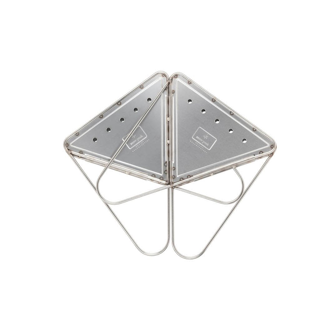 Designed and manufactured in Niigata, Japan the Pack & Carry M Fireplace is made of durable stainless steel. Use the Pack & Carry Fireplace as the centerpiece of gatherings in your backyard or the campfield. The fireplace folds flat for easy transportation and storage, and integrates with a variety of cooking and grilling accessories for an all-in-one fire pit solution. Each purchase includes one fireplace and a nylon carry case. Pair the Pack & Carry M Fireplace with the Fireplace Grill Bridge and Fireplace Grill to create an open fire cooking solution.