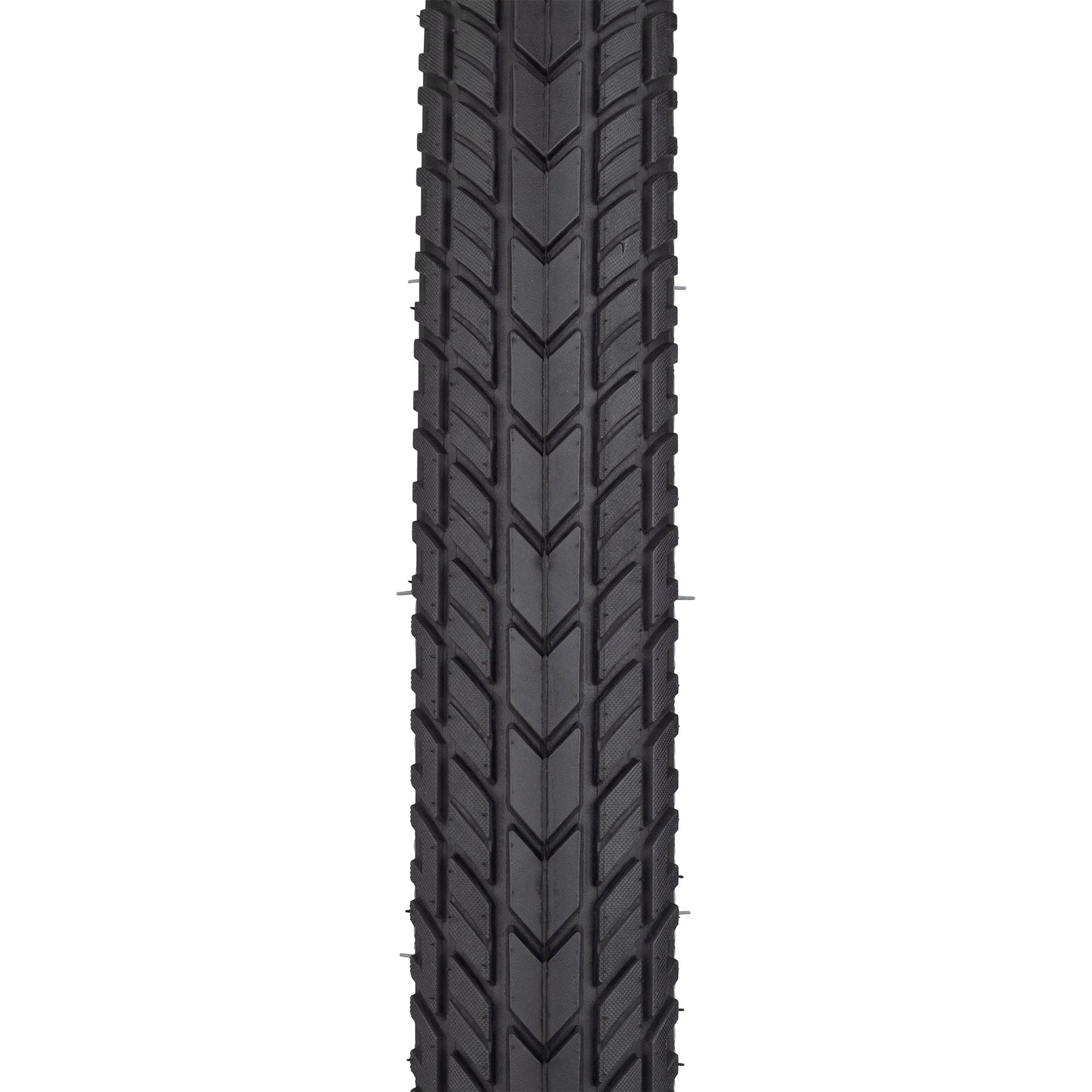 All-Terrain Tread: Smooth centerline for rolling efficiency, with grippy shoulder knobs