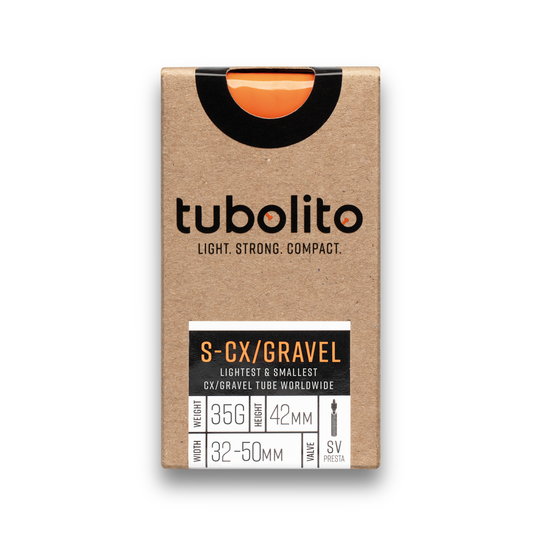 Not only a spare: developed to fit in any small pocket, 35 grams lightweight S-Tubo-CX/Gravel-All, due to its very small packed size, is the ideal spare tube for all 700C and 650B tires from 32 mm – 50 mm width. However, it is not only a savior in need but can be perfectly used on a daily basis as it still is as robust as standard rubber tubes. Also leftovers of tubeless liquids do not do any harm to it. Given it’s low rolling resistance it can also become a decisive advantage in competitions. Available with 42 mm (35 grams) and 60 mm (36 grams) Presta valves (orange and black variants) and suitable for disc brakes.