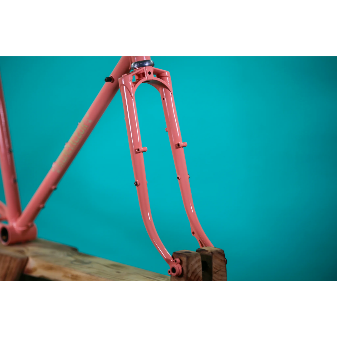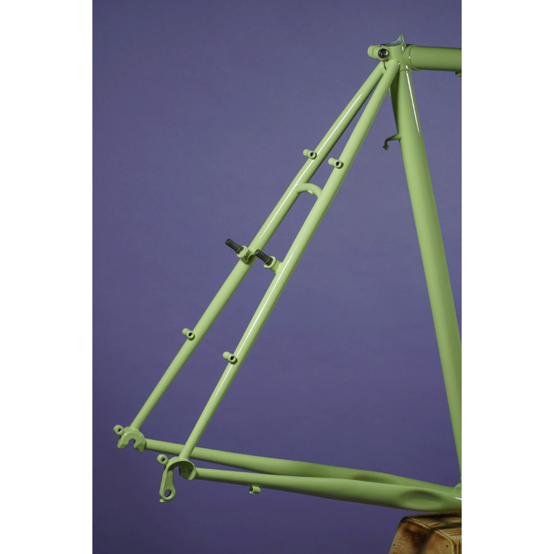 Ahhh...The Romanceür. This is Ron's (Ultraromance) brain child. The 1" threaded, lugged, disc brake bike, now offered in a rim brake version as well! The Romanceur is designed to be able to take you out for a couple day jaunt and bring everything you may need for a whimsical time, in style.
