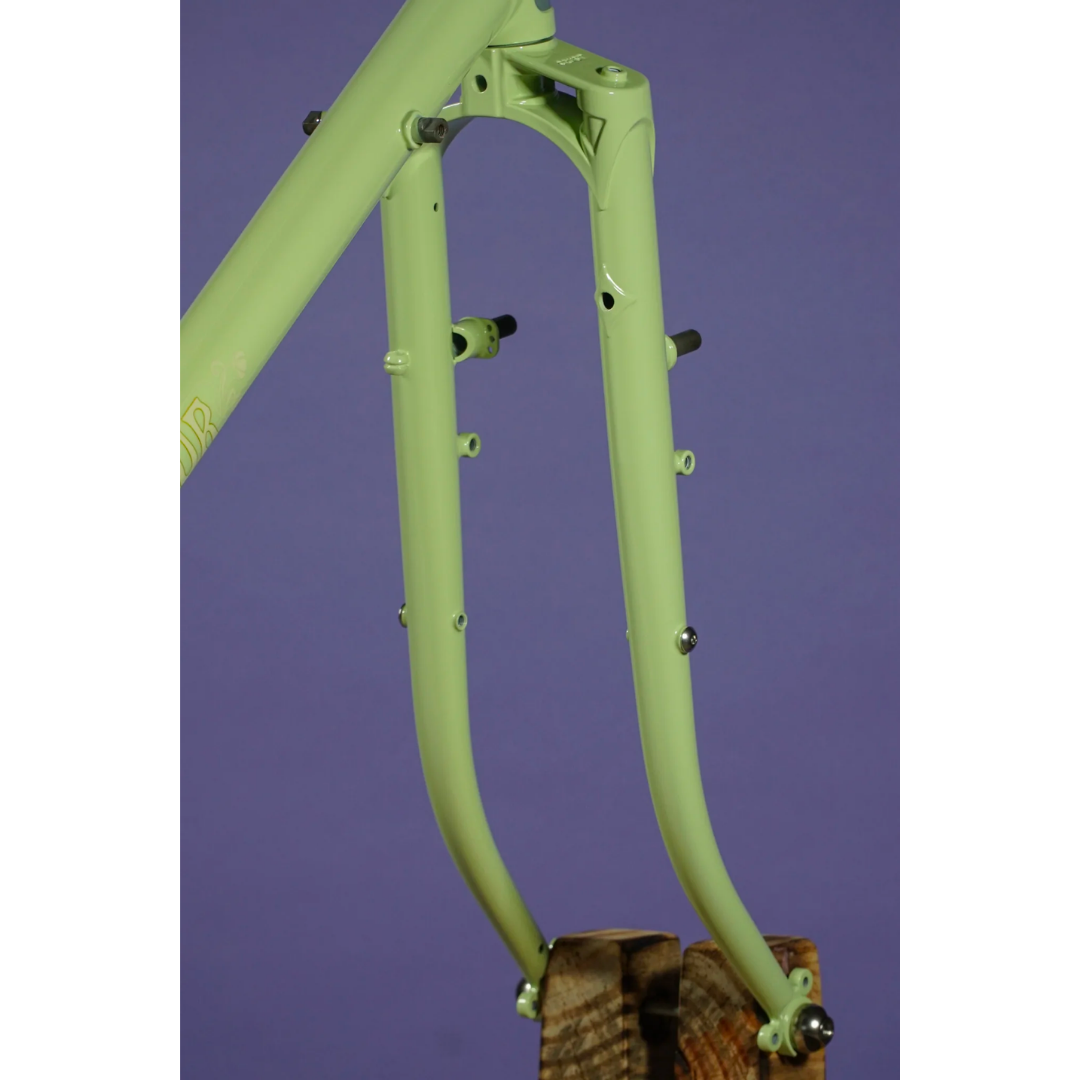 | The Disc Romanceür can fit 26x2.3" or 650bx48 tires with fenders. Without fenders you can go for 26x2.4" or 27.5x2.2". |