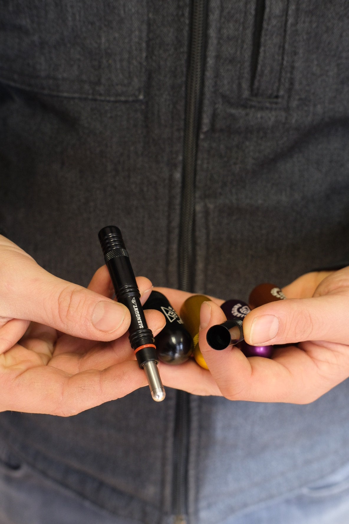 The Dynaplug® Racer Pro improves upon the legendary Racer's original design with Twin Tube™ technology. This allows you to store 4 pre-loaded plugs ready to go in a single tool. Snap-on caps protect plugs from dirt and damage. When your ready to make a repair, just pop off a cap to deploy either a standard size plug (with wheel-friendly soft brass tip) or the aluminum Megaplug for mega-big punctures. If you need more plugs just unthread the Twin Tube™ and flip it around for more plugging action!