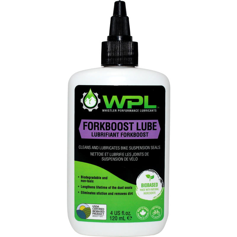 ForkBoost Bike Suspension Lubricant (120ml): An instant bicycle suspension performance booster. WPL ForkBoost lubricates and cleans bicycle suspension seals to eliminate stiction, remove dirt, and lengthen lifetime of the seal. Apply ForkBoost externally to the dust seals of bike suspension by coating the stanchion, pumping the suspension, and wiping away extracted dirt. ForkBoost is fully compatible with rubber and rubber derivatives, causing no risk of damage to the seals, seal swelling or cracking. Use ForkBoost internally during fork rebuilds, to soak foam seals and cut grease to specified thickness.