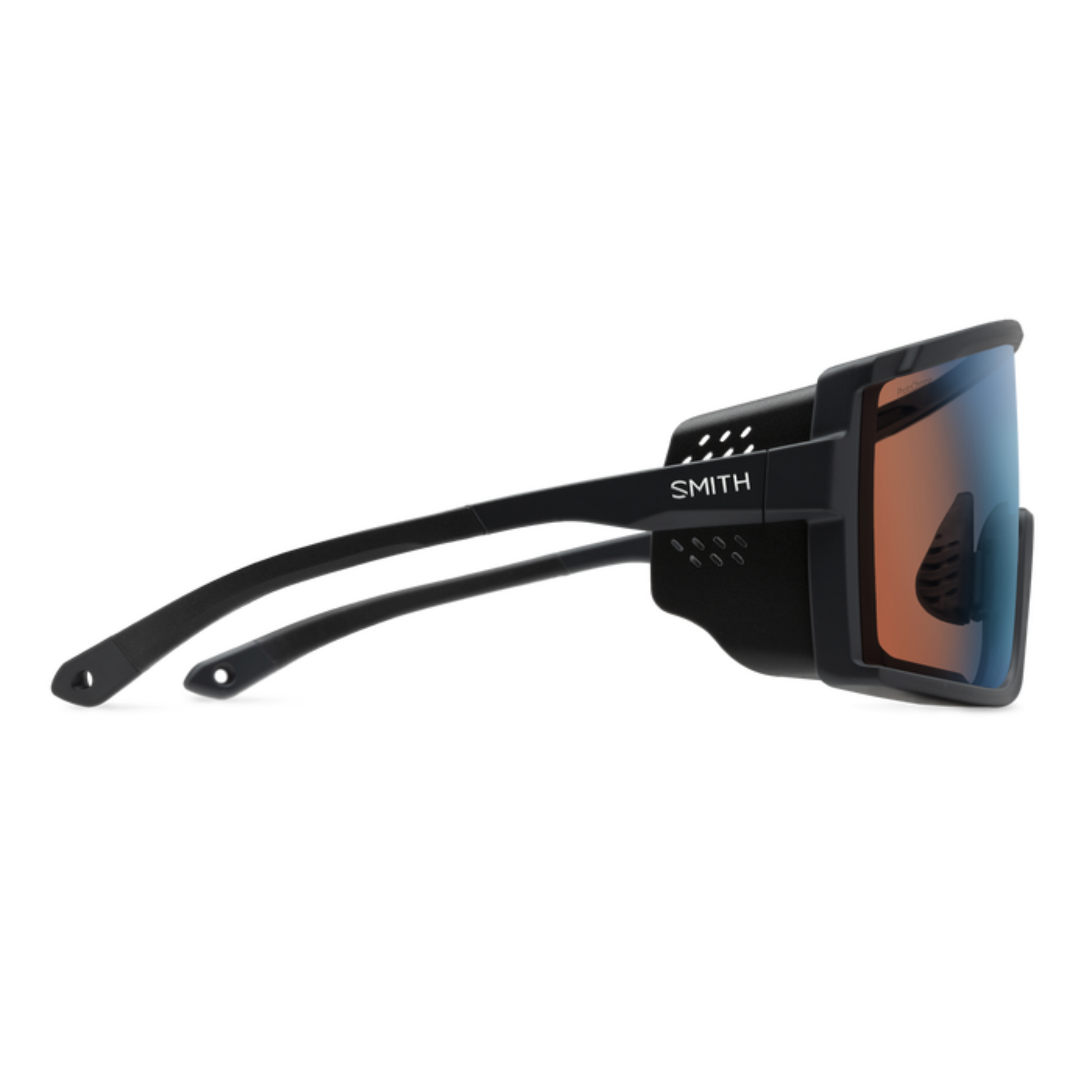 Pursue your thrill in the backcountry. From skin track to boot pack to full-speed descents, the Smith Pursuit sunglasses can do it all. They blend goggle-like coverage with the airflow and easy-to-wear feel of sunglasses that perform while you're climbing and descending. Our ChromaPop™ Glacier Photochromic lens adapts to changing light conditions and delivers color and contrast-boosting performance throughout the full range of the lens. Removable, magnetic side shields add peripheral light coverage, and adjustable temple arms let you customize the fit. A pack-friendly, screwless hinge creates a fail-safe backcountry design, and a low-profile case ensures minimal storage in your pack.