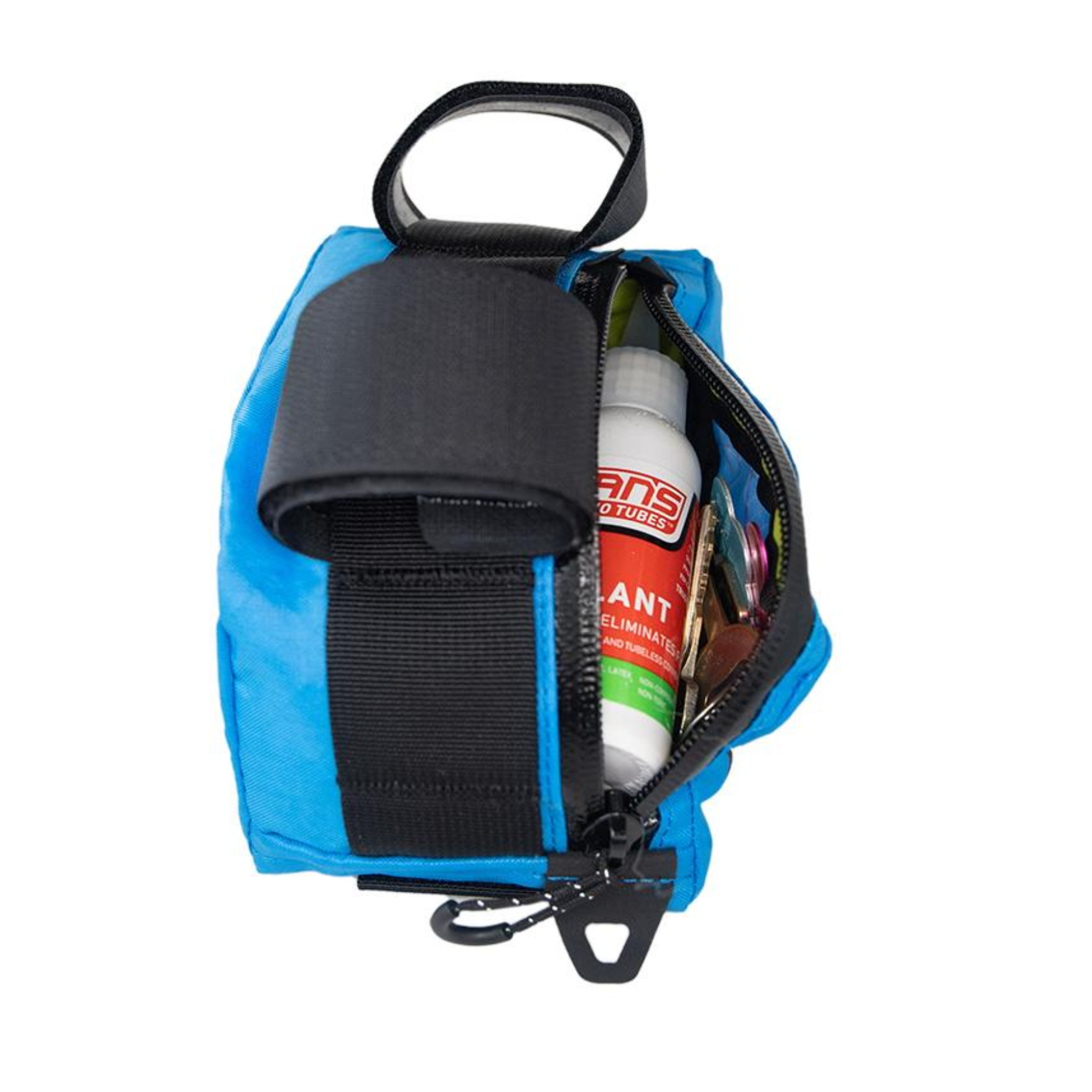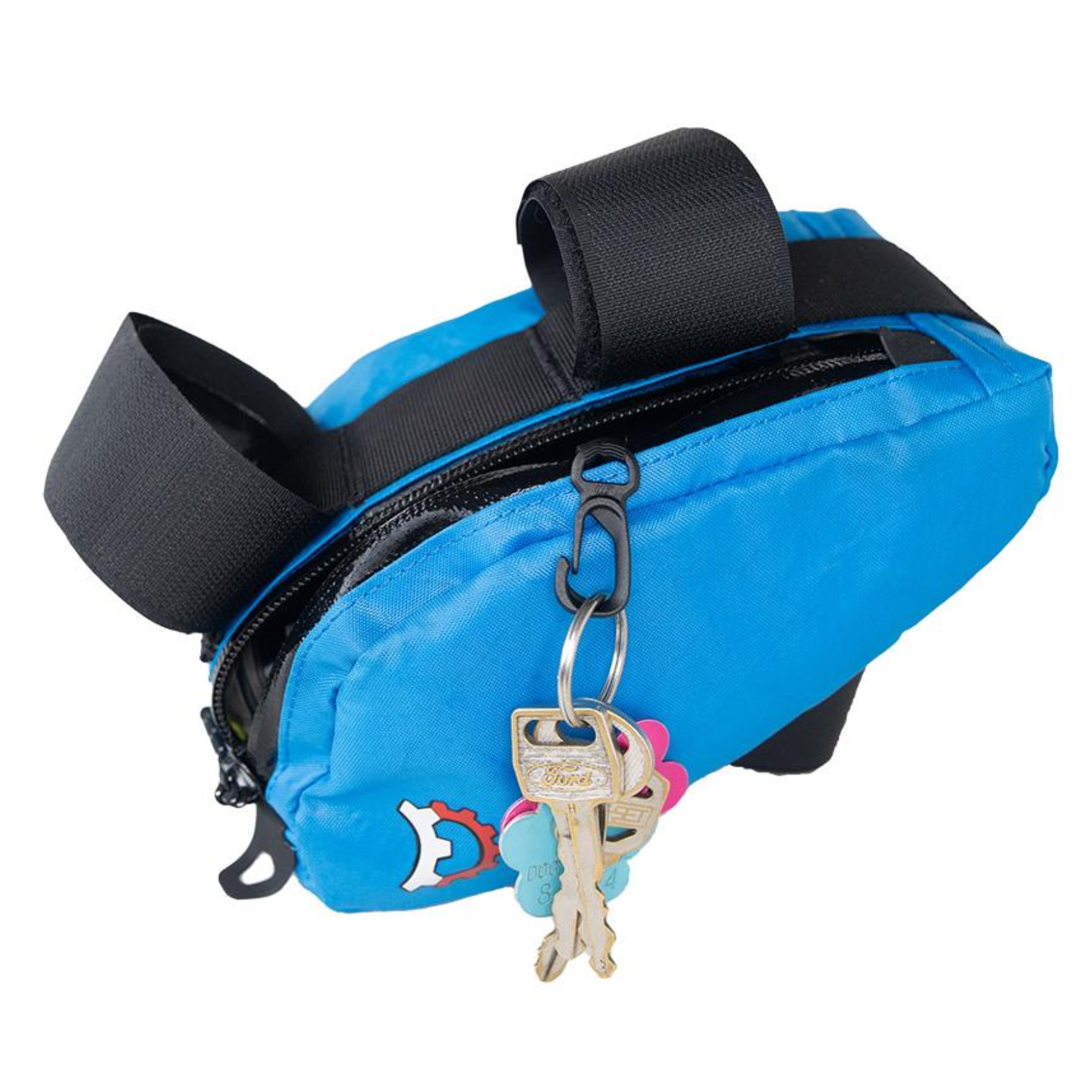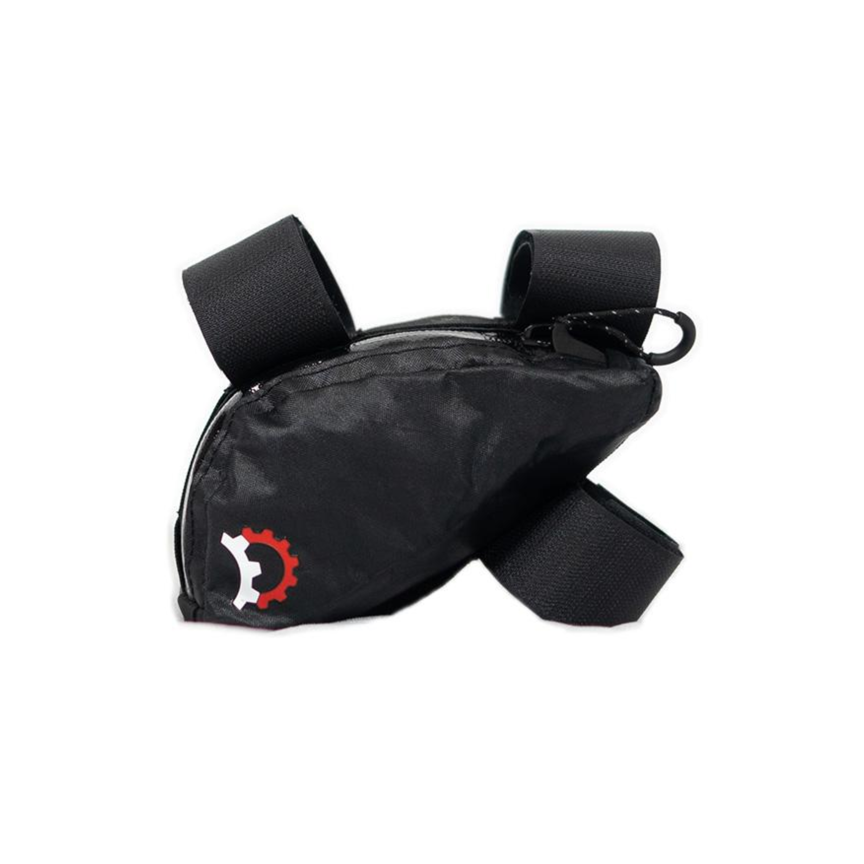 Introducing the Cranny, a micro frame bag for day ride essentials! This small but mighty bike bag was designed to fill under utilized space especially on full suspension bikes. The Cranny is the smallest frame bag Revelate has ever made and about half the capacity of its larger counterpart, the Nook. The panel opening design with a curved zipper provides access to the interior with a small mesh organizer pockets and key clip. Silicone backed hook and loop straps lock to the frame and are easy on finishes. Whether you're riding a mountain, road, fat or gravel bike, the Cranny packs it in!