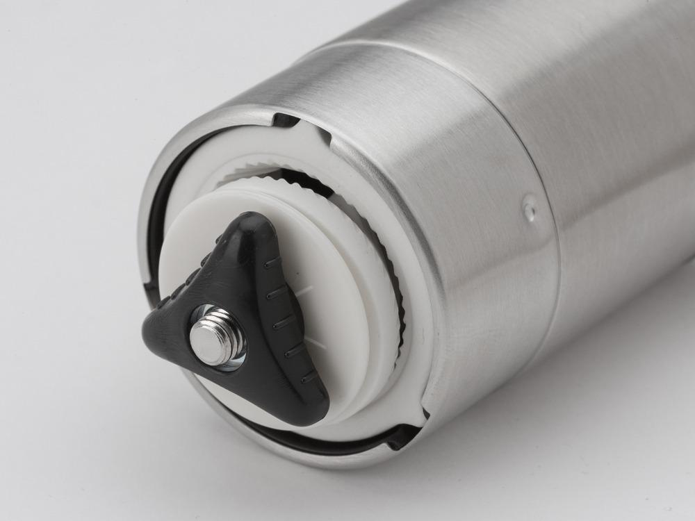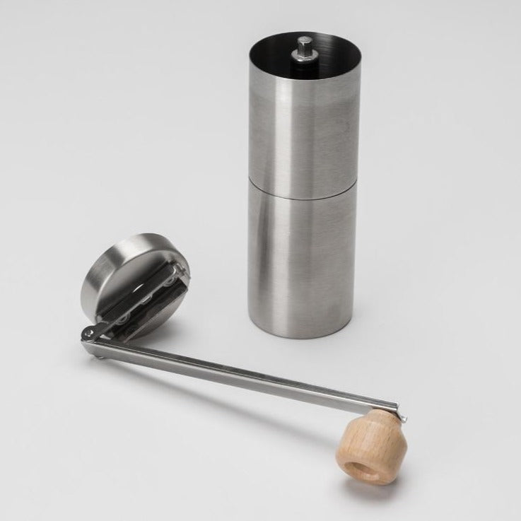 Modeled after professional barista equipment and made of stainless steel, the Field Barista Coffee Grinder features an adjustable ceramic burr and produces a variety of coffee grounds. Take it camping or use at home for fresh coffee. Place coffee beans in the top container and turn the handle to grind. After use, the Field Barista Coffee Grinder can be folded into a carry case for compact storage. Pair the Field Barista Coffee Grinder with the Field Barista Coffee Drip or the Collapsible Coffee Drip for easy pour-overs.