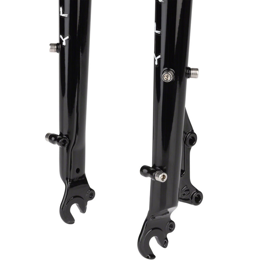 The Ogre Fork is non-suspension corrected and will run 29" as well as 27.5" tire options. This fork is designed to run disc brakes, fenders and a rack simultaneously.