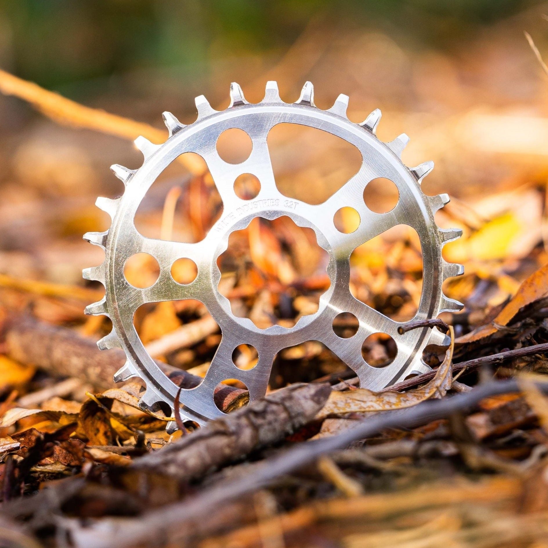 TSR (Tall-Short-Ring) 1X chainrings are designed to work with all modern 10/11/12 speed 1X drivetrain systems. The tall/short tooth profile helps prevent the chain from falling off the ring when riding through rough terrain and is a must on 1x drivetrains but is also compatible with singlespeed drivetrains. Made in the White Industries shop from U.S. sourced 7075-T6 aluminum (48 tooth ring is 6061-T6).